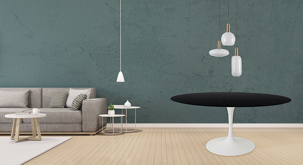 Dining table with round top in black stained oak and polished aluminum base entirely made in Italy . This product is designed to furnish with taste and originality every living space and kitchen thanks to its linear and elegant finishes. The union between the black stained oak top and the polished aluminum base guarantees quality and resistance and gives an innovative and particular touch to the table itself. This furniture can be inserted in any style of furniture, from modern to contemporary, thanks to its colors and natural grain of the wood that give the room a warm and welcoming atmosphere.