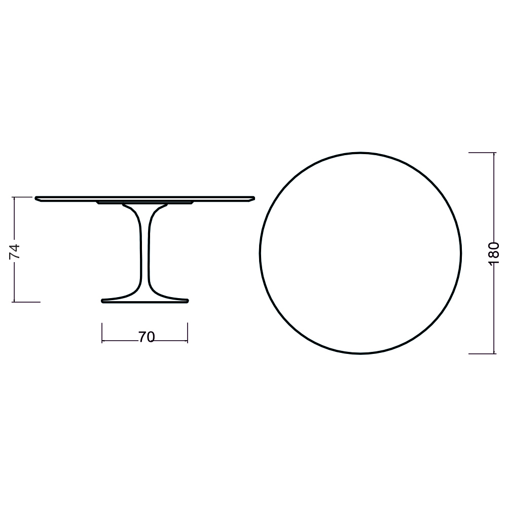Table top diameter 180 x height 74 cm / Base diameter 70 cm