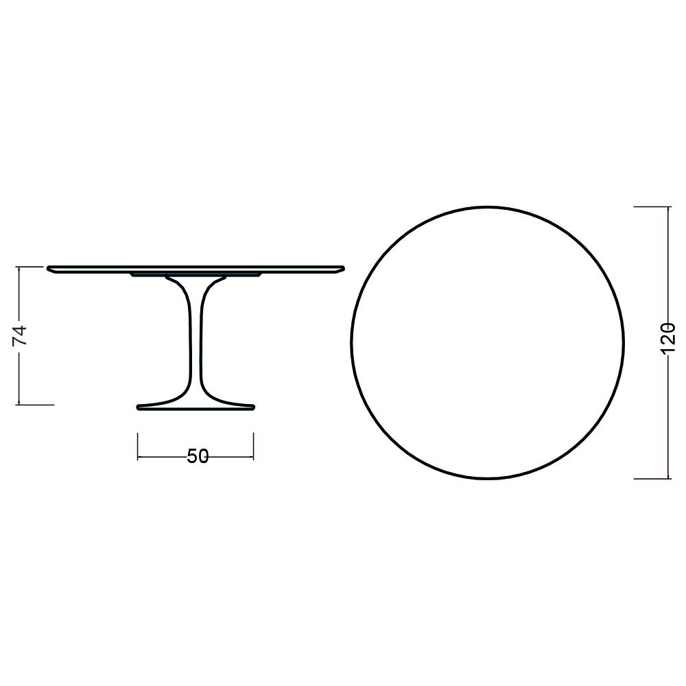 Table top diameter 120 x height 74 cm / Base diameter 50 cm