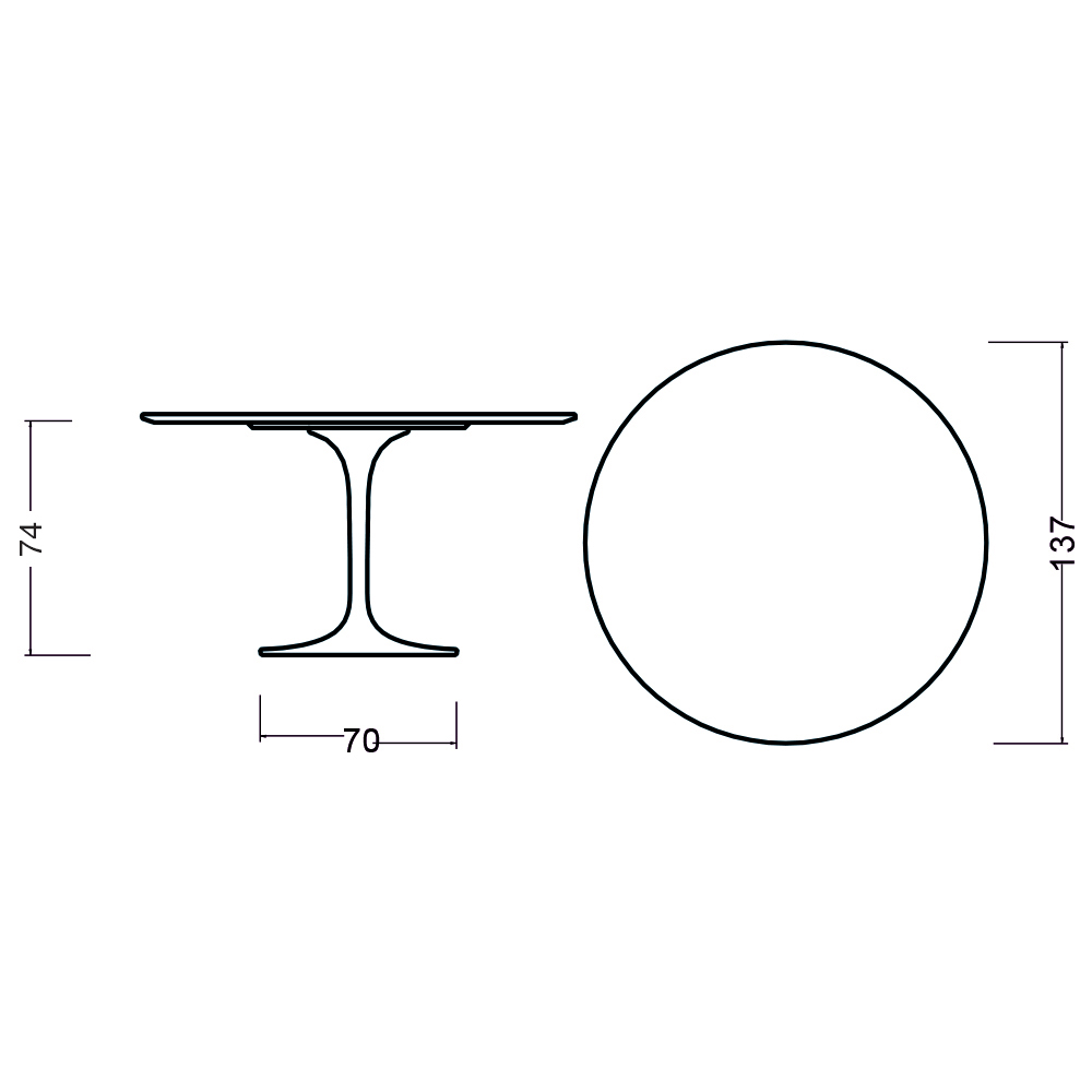 Table top diameter 137 x height 74 cm / Base diameter 70 cm