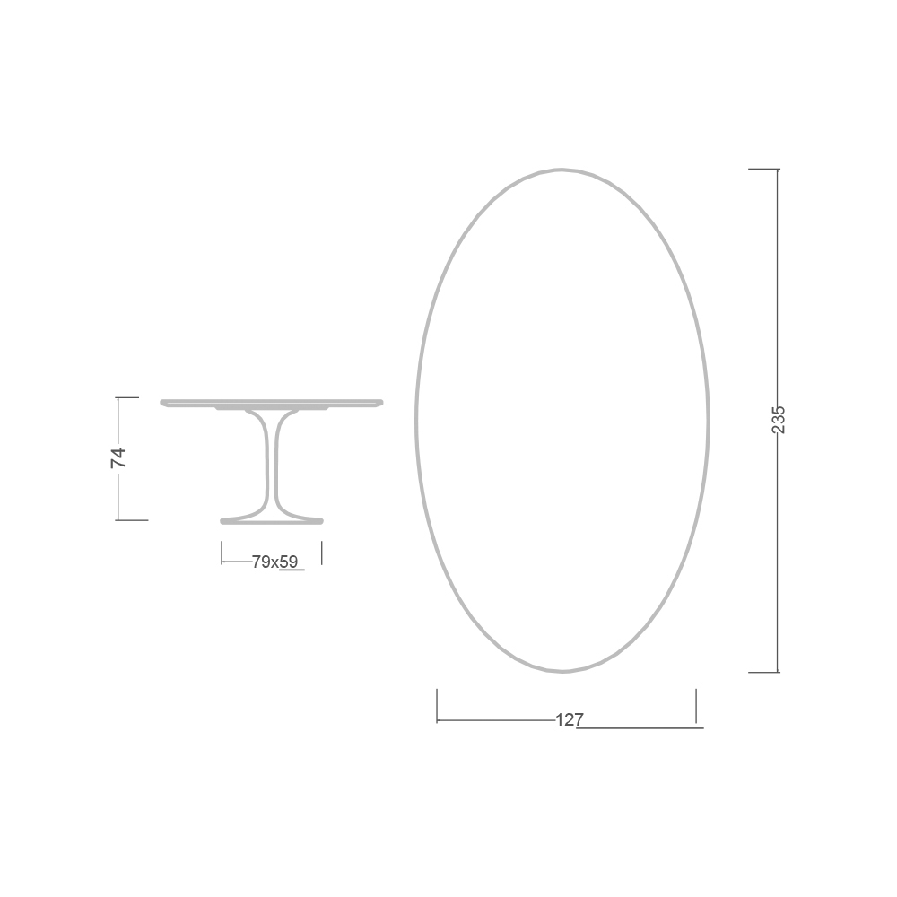Top: 235 x 127 - Base: 79 x 59 - Height 74 cm;