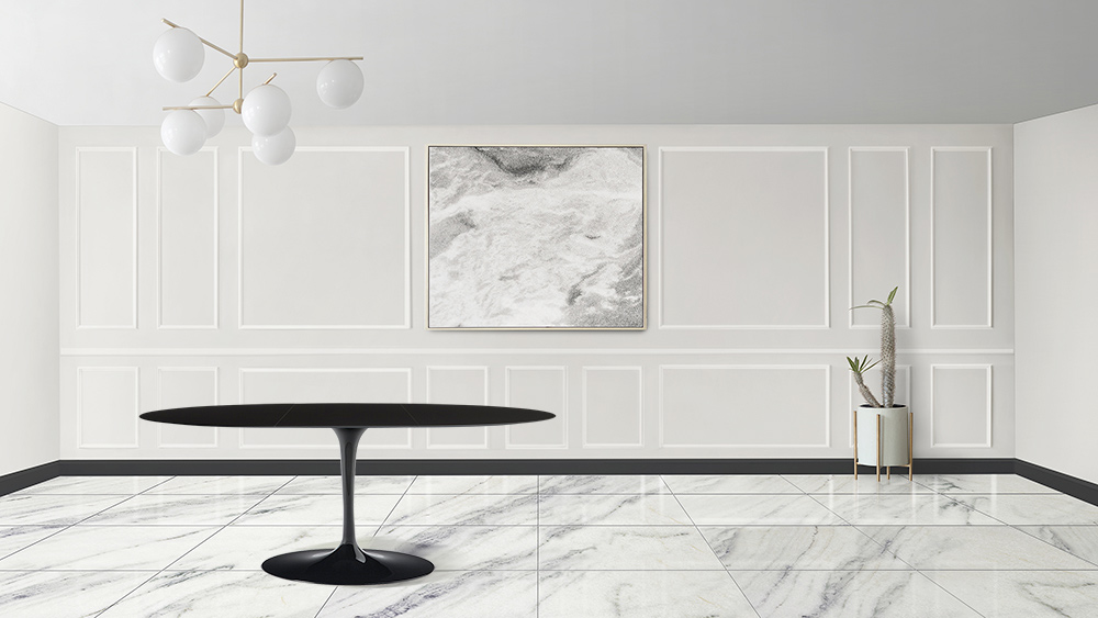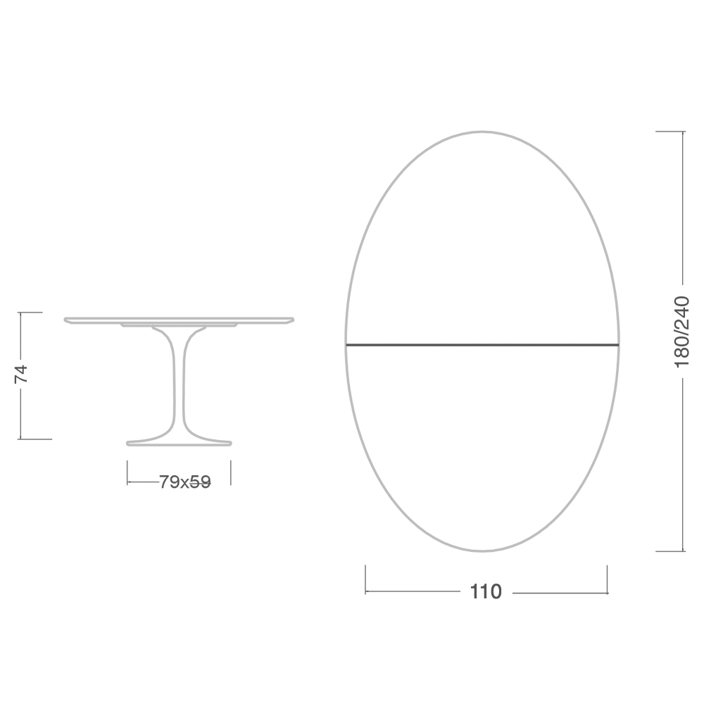 Extendable dining table up to 240 cm entirely made in Italy with oval top in black liquid laminate and base in black polished aluminum. The particular oval shape and the simple and linear finishes make this element a perfect furnishing accessory to be inserted in any living room and kitchen to make it modern and original . It is perfect for inviting guests thanks to the possibility of being extended and the shape of the base that allows the insertion of several chairs while remaining elegant and innovative . The materials used for the construction give this table quality and resistance even with the passing of time making it a perfect element for all events and occasions of use.