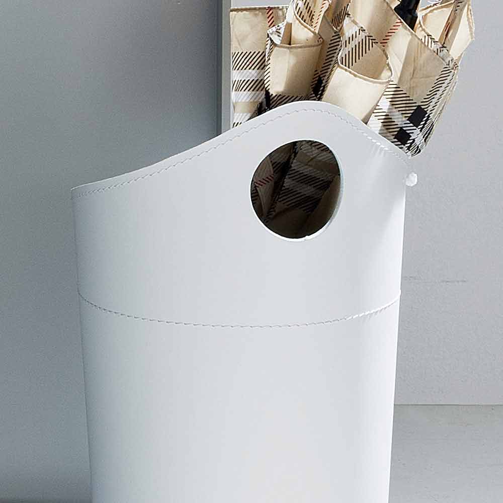 Umbrella stand in Pluvia handmade design regenerated leather Pluvia is a one-of-a-kind umbrella stand, handcrafted by Italian Master Artisans. It is made entirely of regenerated leather, both externally and internally. The bottom is in plywood, also covered in leather. Inside there is a practical drip tray in plastic material. At the top there is a convenient handle, which allows for easy movement. The design is elegant and sober, with attention to the smallest details, starting from the visible stitching up to the central cord that runs vertically. Pluvia is available in different color variations, choose the one you prefer. 100% MADE IN ITALY product.