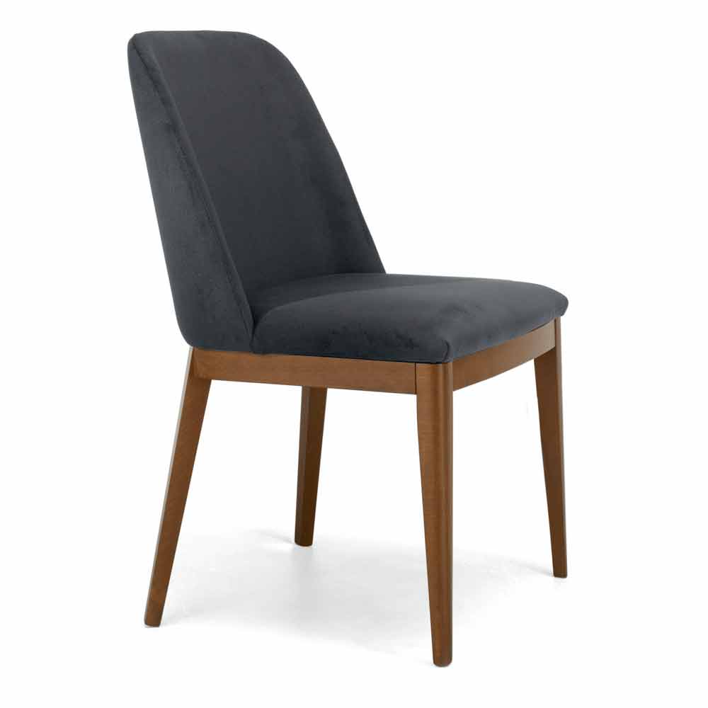 Modern dining room chair with oak wood base and upholstered fabric seat; handcrafted in Italy.