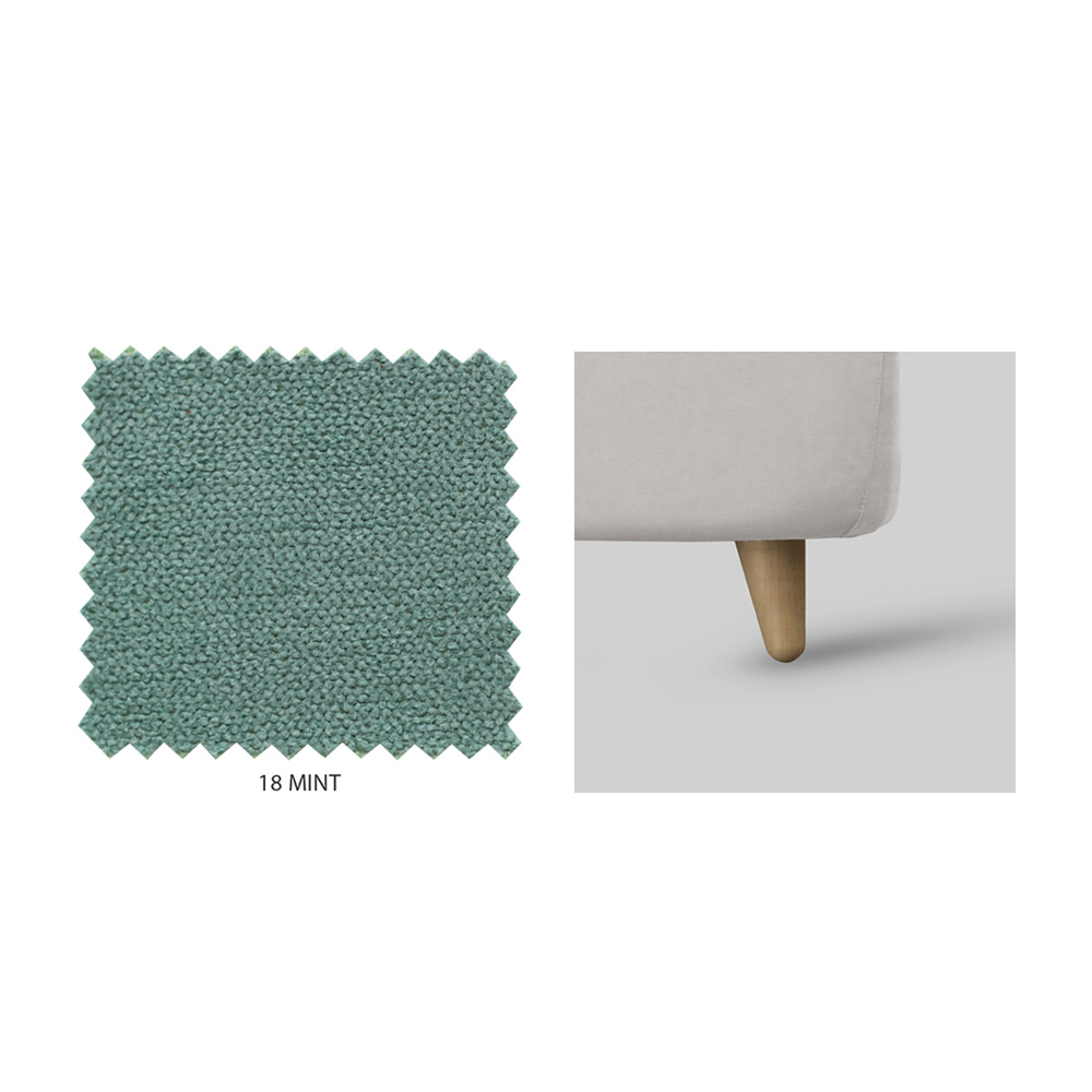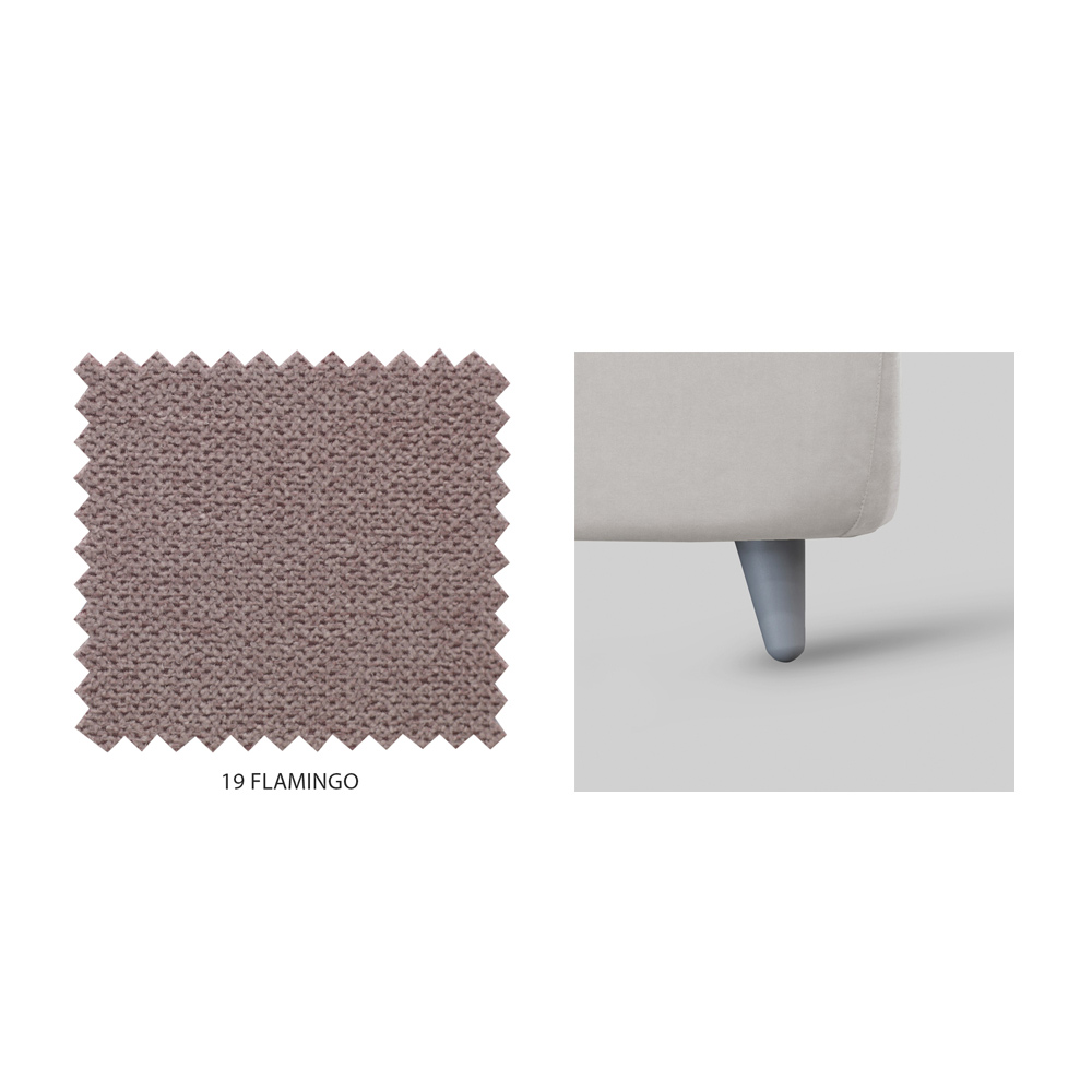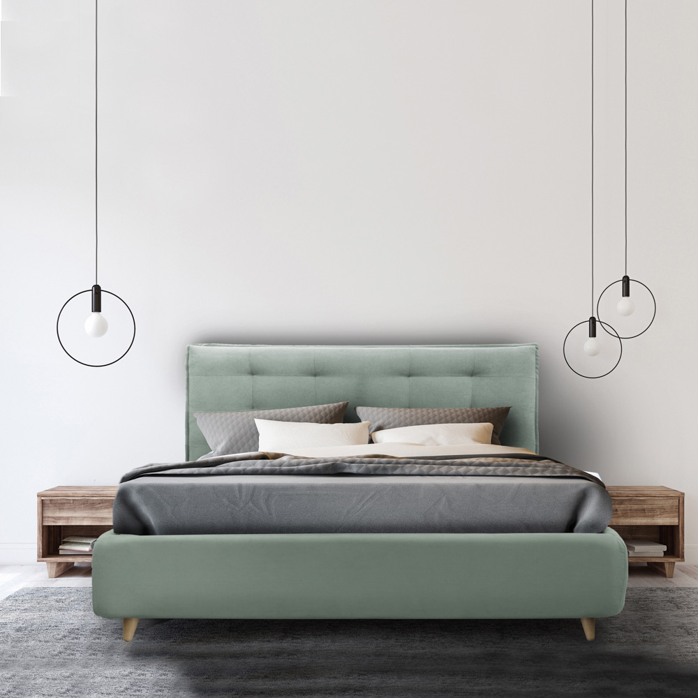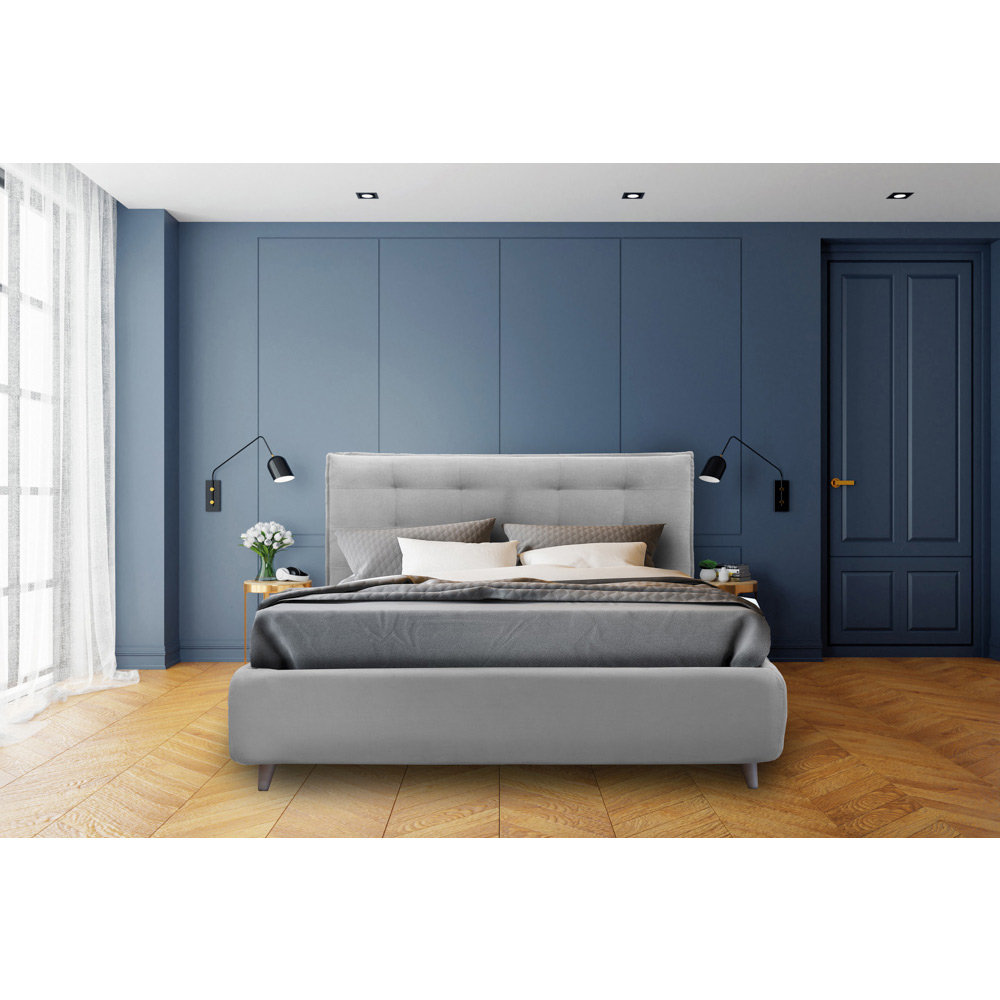 Double bed made with a medium density wood fiber panel (MDF) structure and covered in fabric with polypropylene feet.