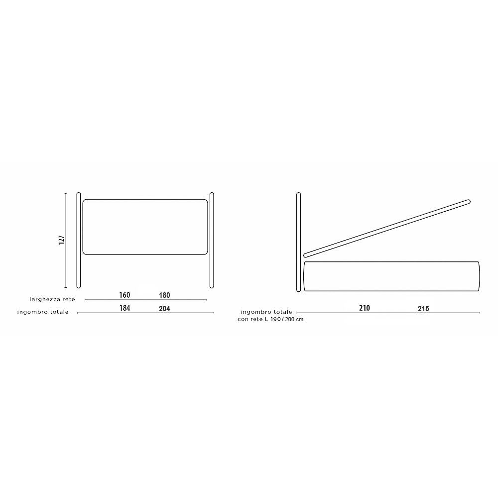 • 184 x 210 x height 127 cm - bed base 160x190 cm