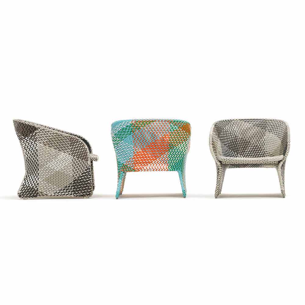 synthetic fiber of different color, which create dynamic chromatic backgrounds. Its volumes are designed to ensure maximum stability and excellent support for the back and arms.