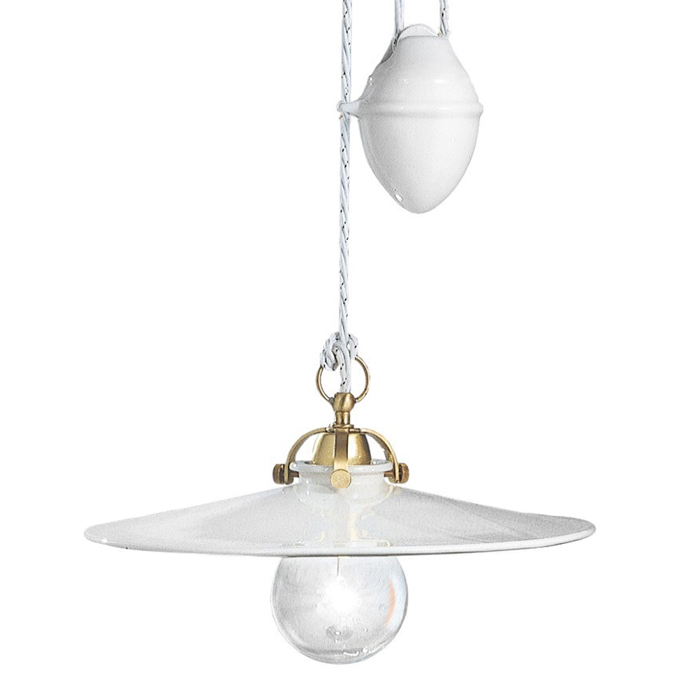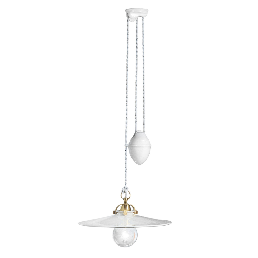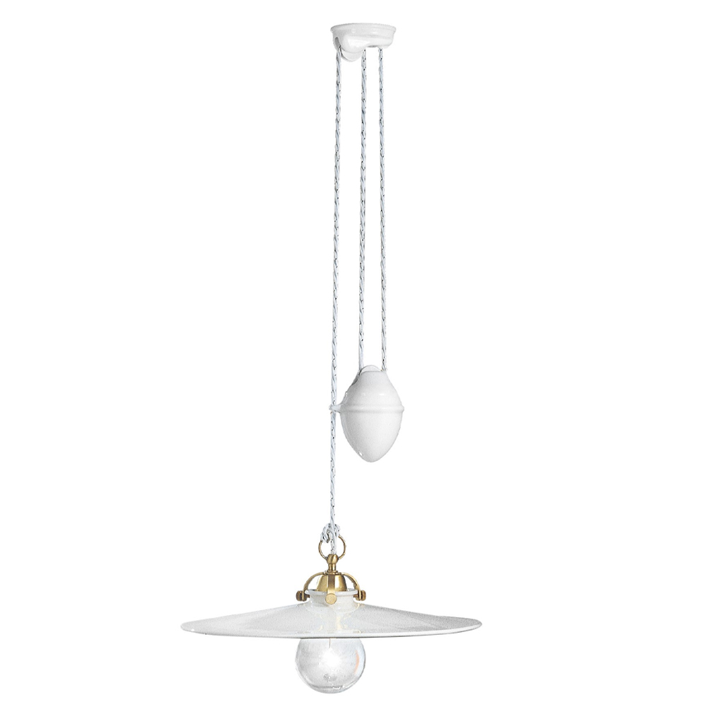 The suspension lamp with sliding rail is entirely made of iron and glossy ceramic , materials   which highlight the skill and manual skills of the craftsmen.