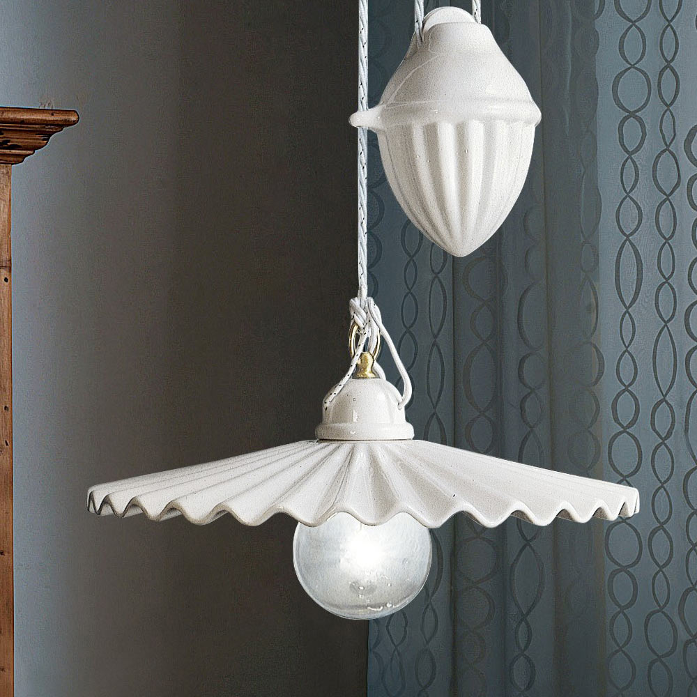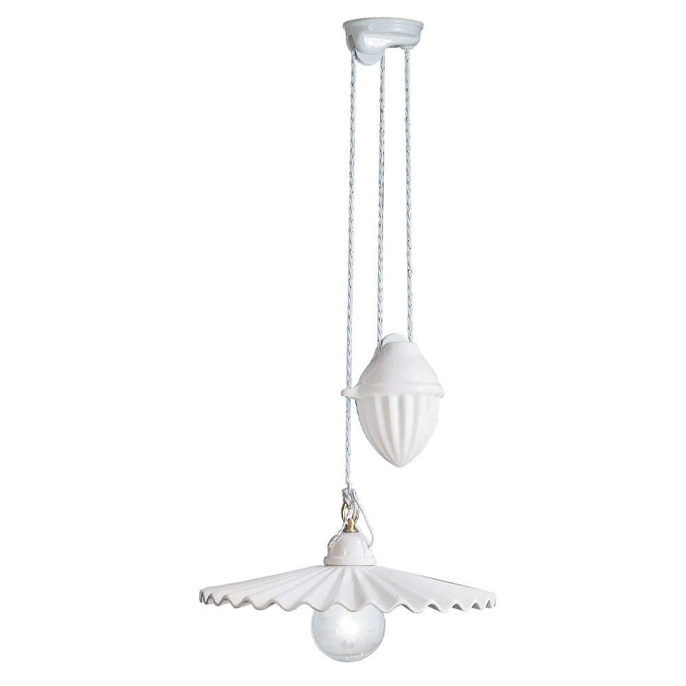 The suspension lamp with sliding rail is entirely made of pleated glossy ceramic   which highlights the craftsmanship and dexterity of the craftsmen.