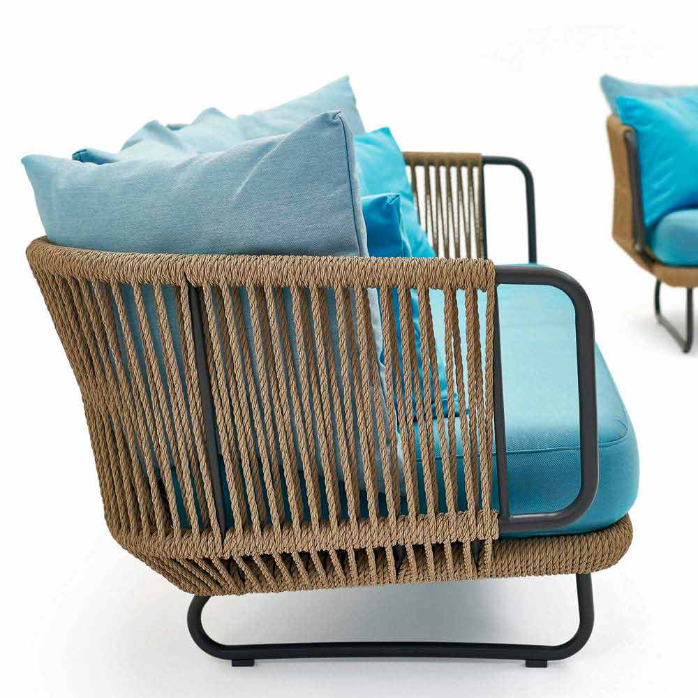 Varaschin Babylon modern design 2 seater garden sofa with pillows Babylon is a collection composed of sofas, armchairs, chaise longue and poufs. All the items from this collection are registered models and have a painted aluminium and synthetic fibre frame.