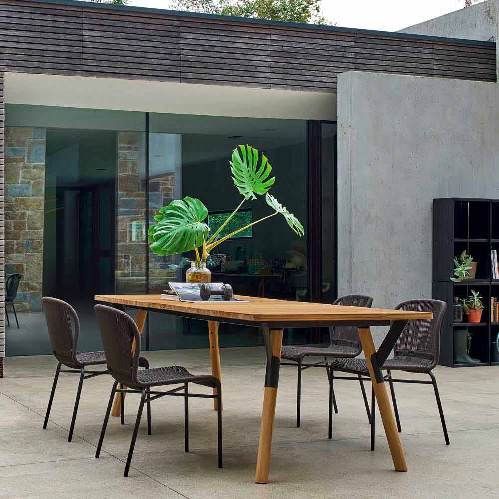 Garden dining table with teak wood legs, H 75 cm Link by Varaschin