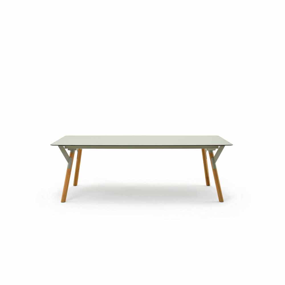 The garden table Link has a painted stainless steel frame and teak wood legs. The top is available in HPL (12 mm thick) or in teak wood ( 30 mm thick ). Thanks to its versatile design, you can use this extensible table both in the garden, in the patio or indoor. You can customize the table Link by choosing between the available dimensions and finishes.