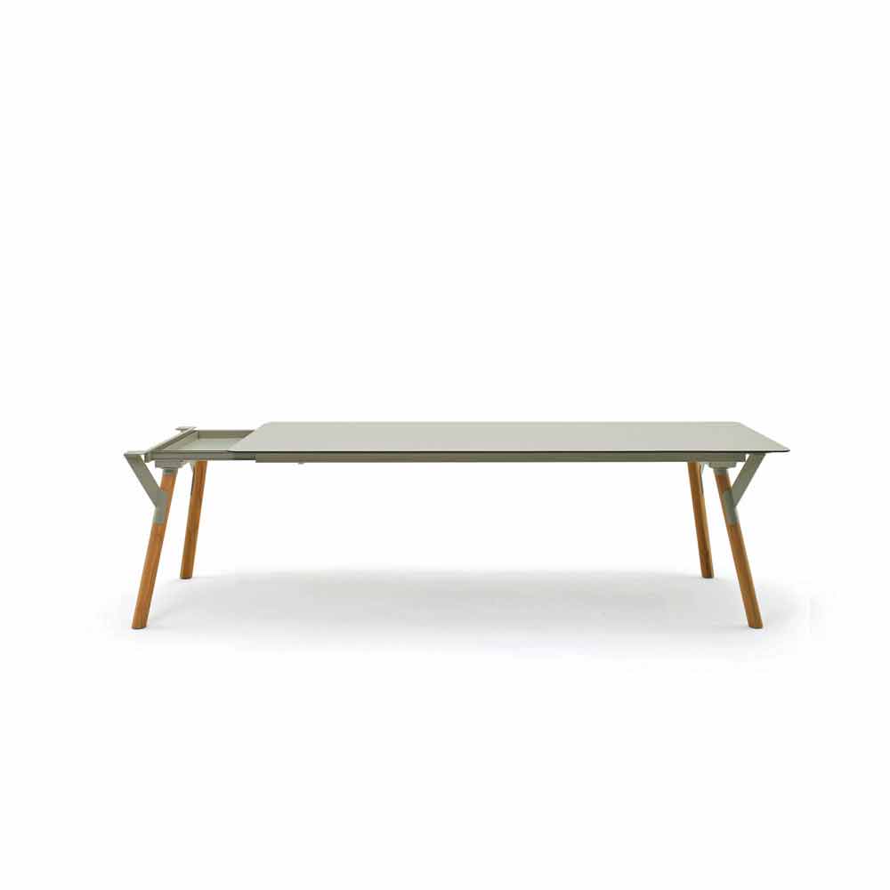Varaschin Link outdoor extendable dining table with teak legs, H 75 cm
