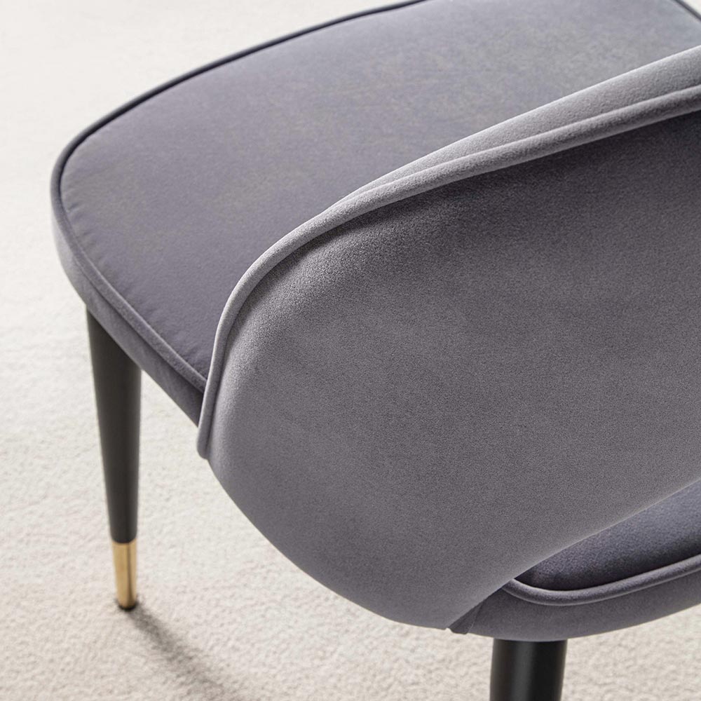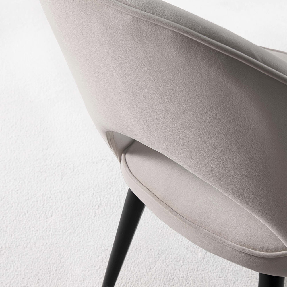 Chair upholstered in stain-resistant velvet and legs made of black painted metal enriched with satin brass feet. Limitless elegance distinguishes this wonderful chair with enveloping features whose design has been designed to offer a comfortable seat with a refined style capable of revolutionizing any furniture thanks to a strong and extremely refinedpersonality . The use of velvet together with black metal and satin brass helps to create a real design object capable of becoming the true protagonist of the room, making its aesthetics unique.