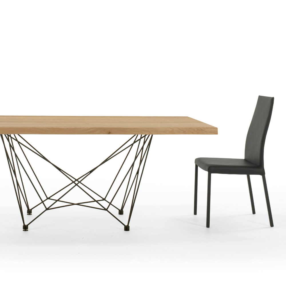 The Ezzellino kitchen table is outlined by curved lines and a refined design that make it the true protagonist of all your environments. Handcrafted in Italy with excellent quality materials and 100% made in Italy. Composed of a veneered wood top with irregular debarked edge and a black lacquered steel base.