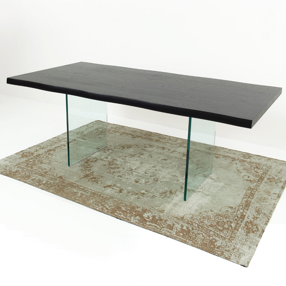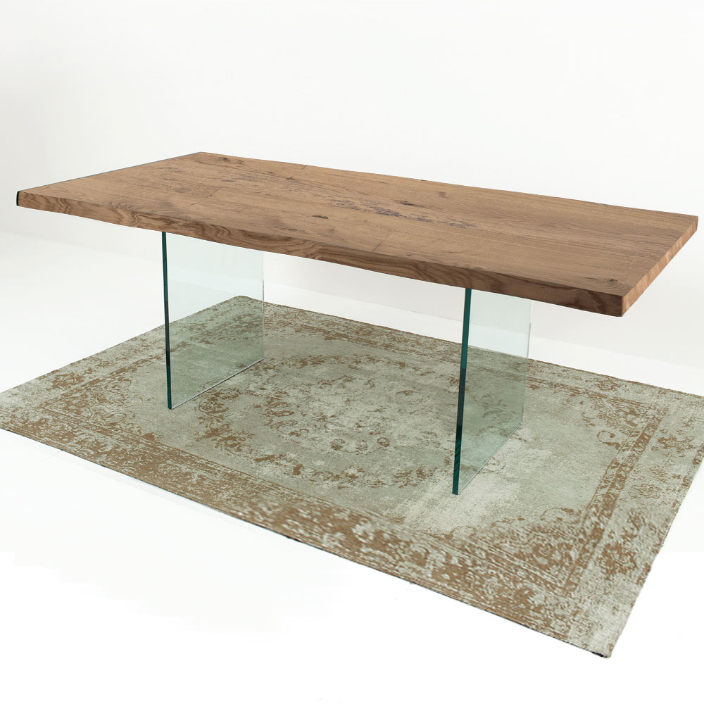 The Strappo designer dining table is characterized by solid and long-lasting lines, perfect for furnishing all your environments with style and design. Handcrafted in Italy with excellent quality materials and 100% made in Italy. Composed of a veneered wood top with irregular debarked edge and a clear glass base .