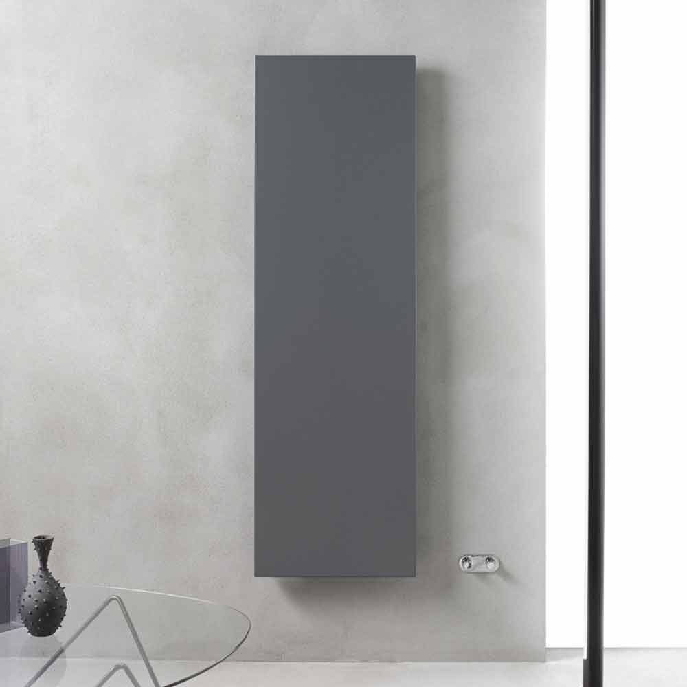 Modern design vertical wall-mounted radiator in slate gray steel made in Italy.