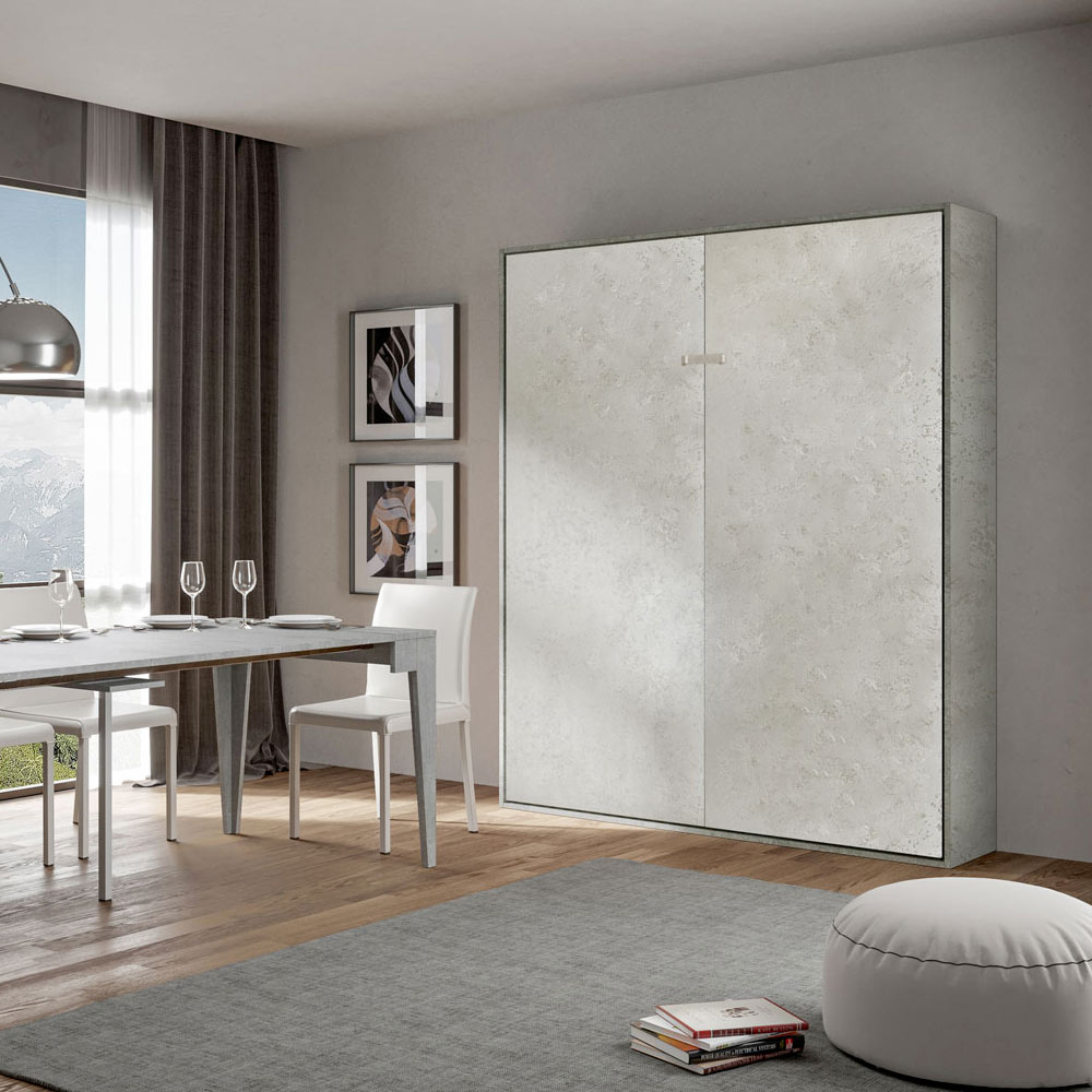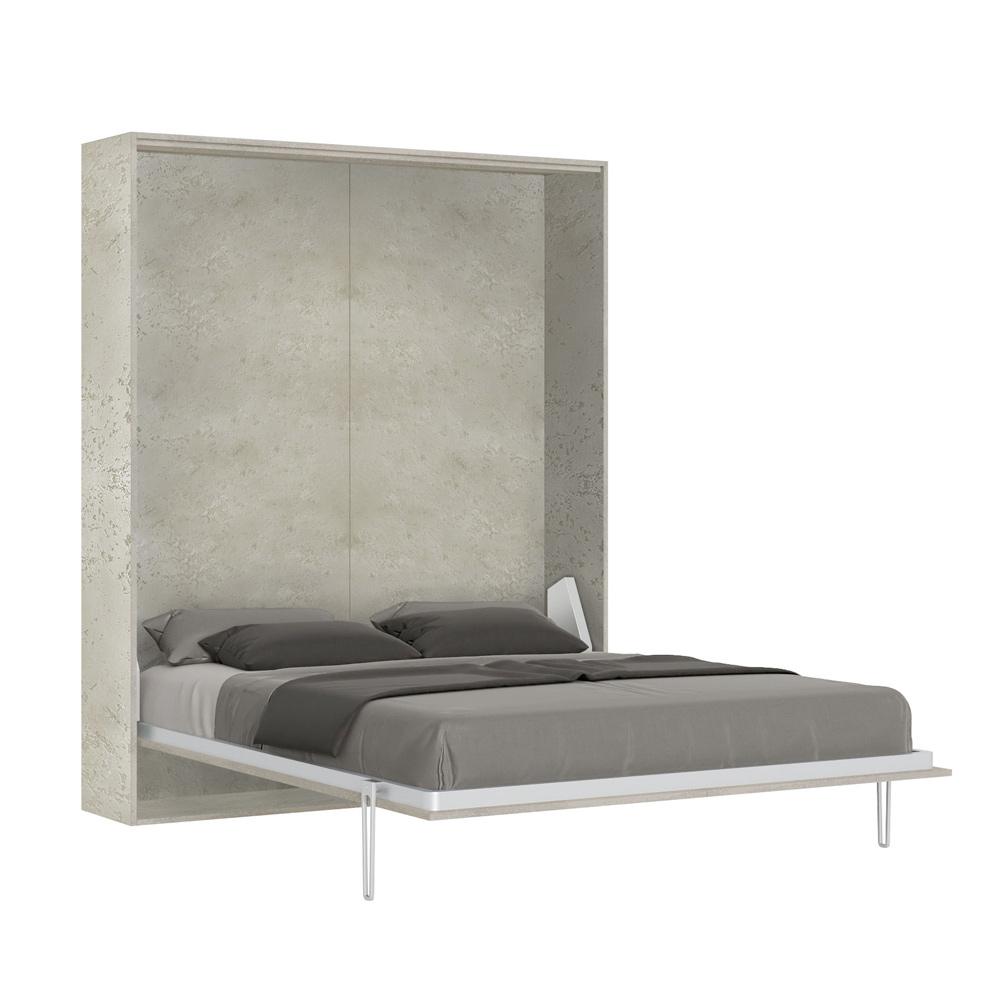 The bed frame is made of 18 mm thick melamine particle board , ensuring resistance and durability over time. The opening mechanism is smooth and safe, transforming the wall into a comfortable bed with a simple gesture.