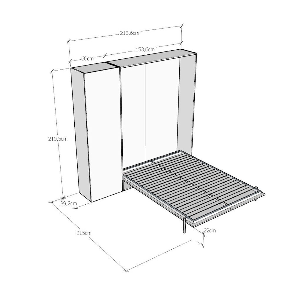 - 213.6x39.2x210.5 cm (open x 215 cm) - Composition proposed with a practical and spacious column, which can be positioned either to the left or right of the bed, which allows you to store everything you need inside, for a bedroom that is always tidy. Column door with push-pull opening.