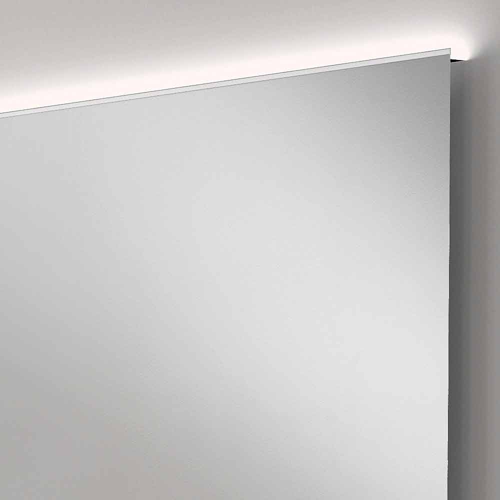 Bathroom mirror with LED lighting and sand-blasting effect.