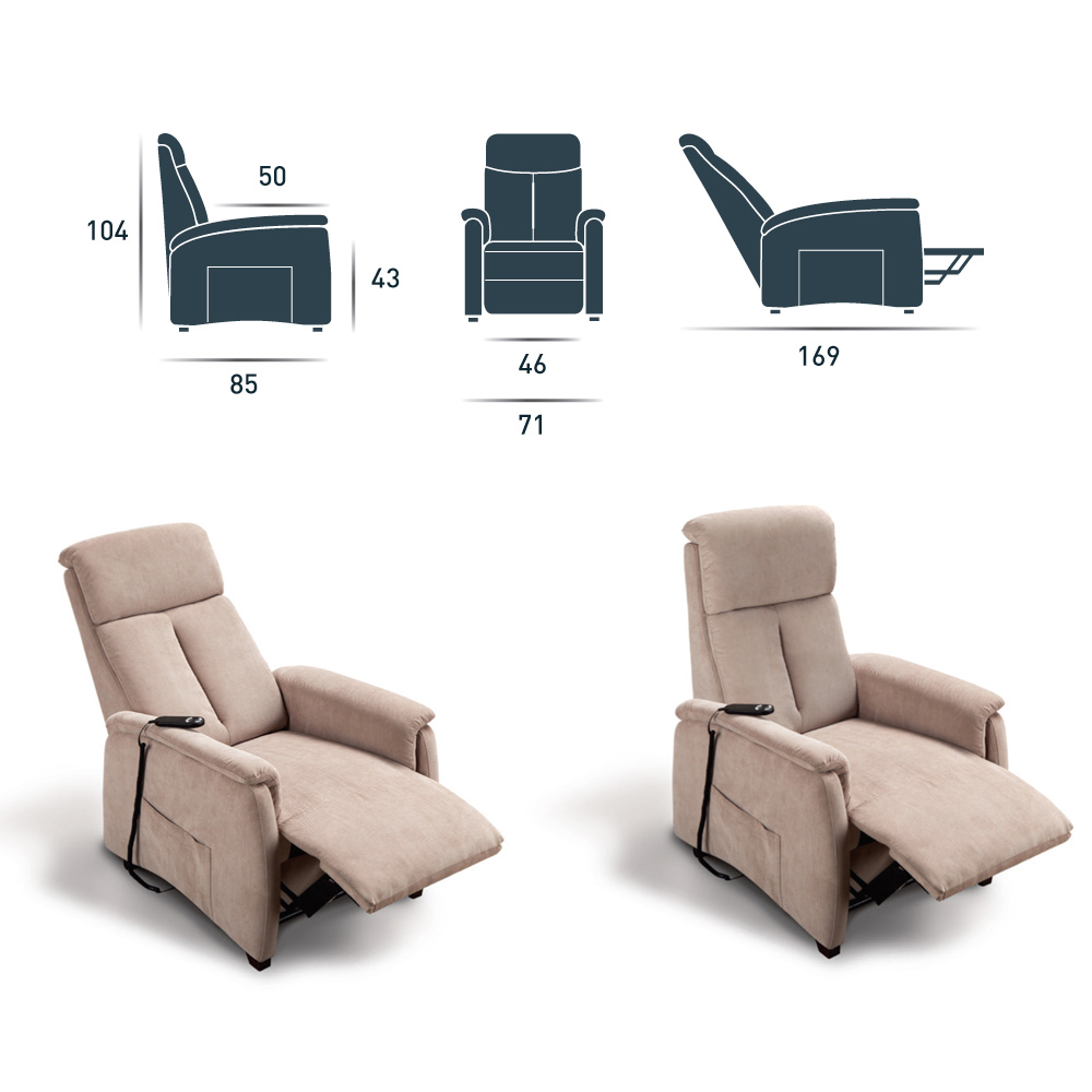 The Via Venezia lift chair has a 2-motor mechanism featuring a motorized relaxation movement with the aid of a remote control.