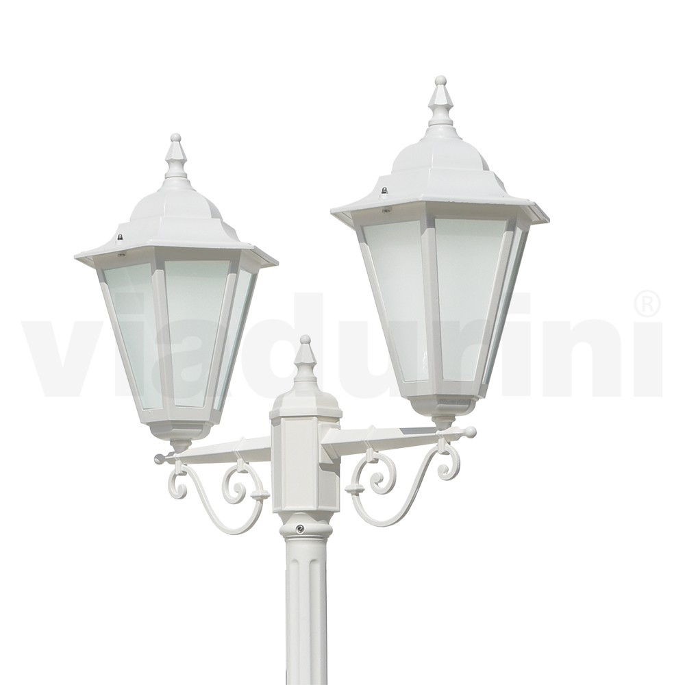 2-light lamppost in aluminum and glass Made in Italy, vintage style.