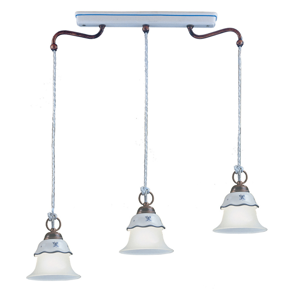Vintage 3-Light Suspension Lamp in Iron, Glass and Ceramic - Ferrara