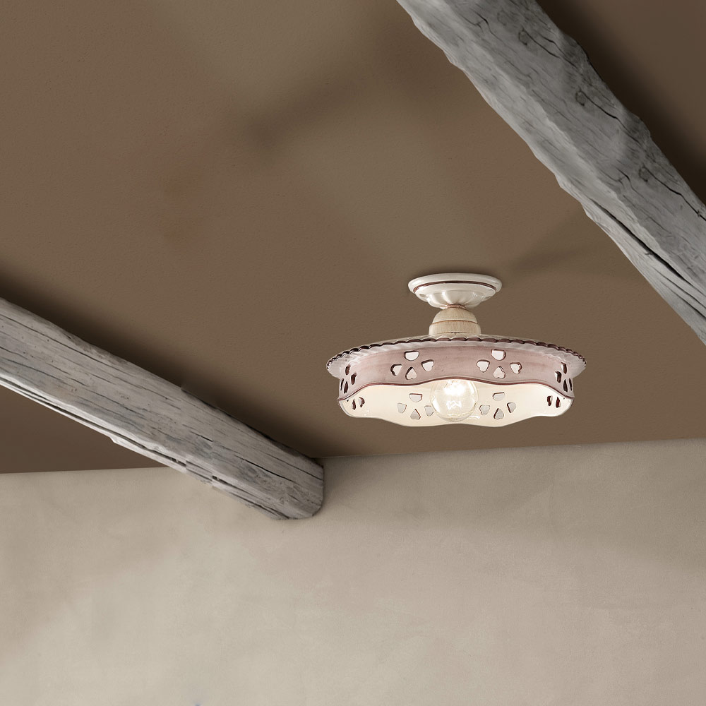 Vintage Ceiling Lamp in Ceramic and Handmade Iron 2 Sizes - Alessandria