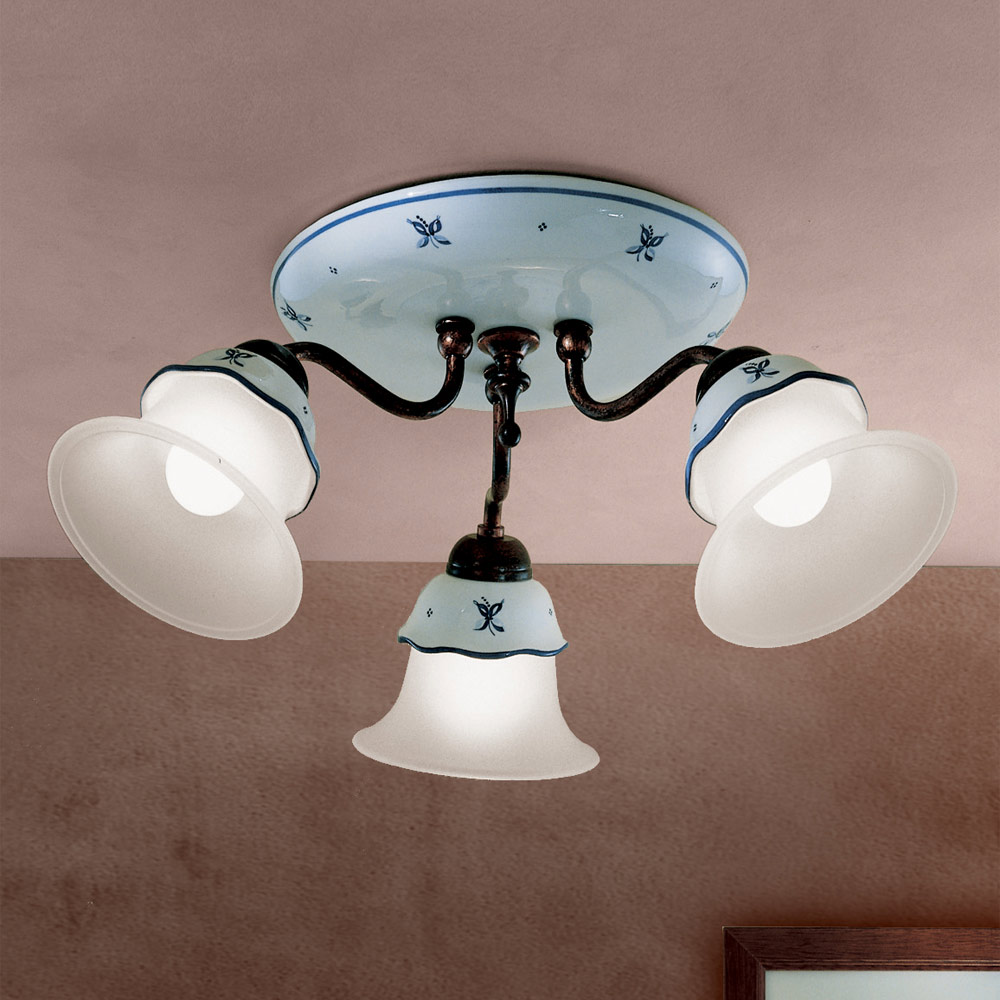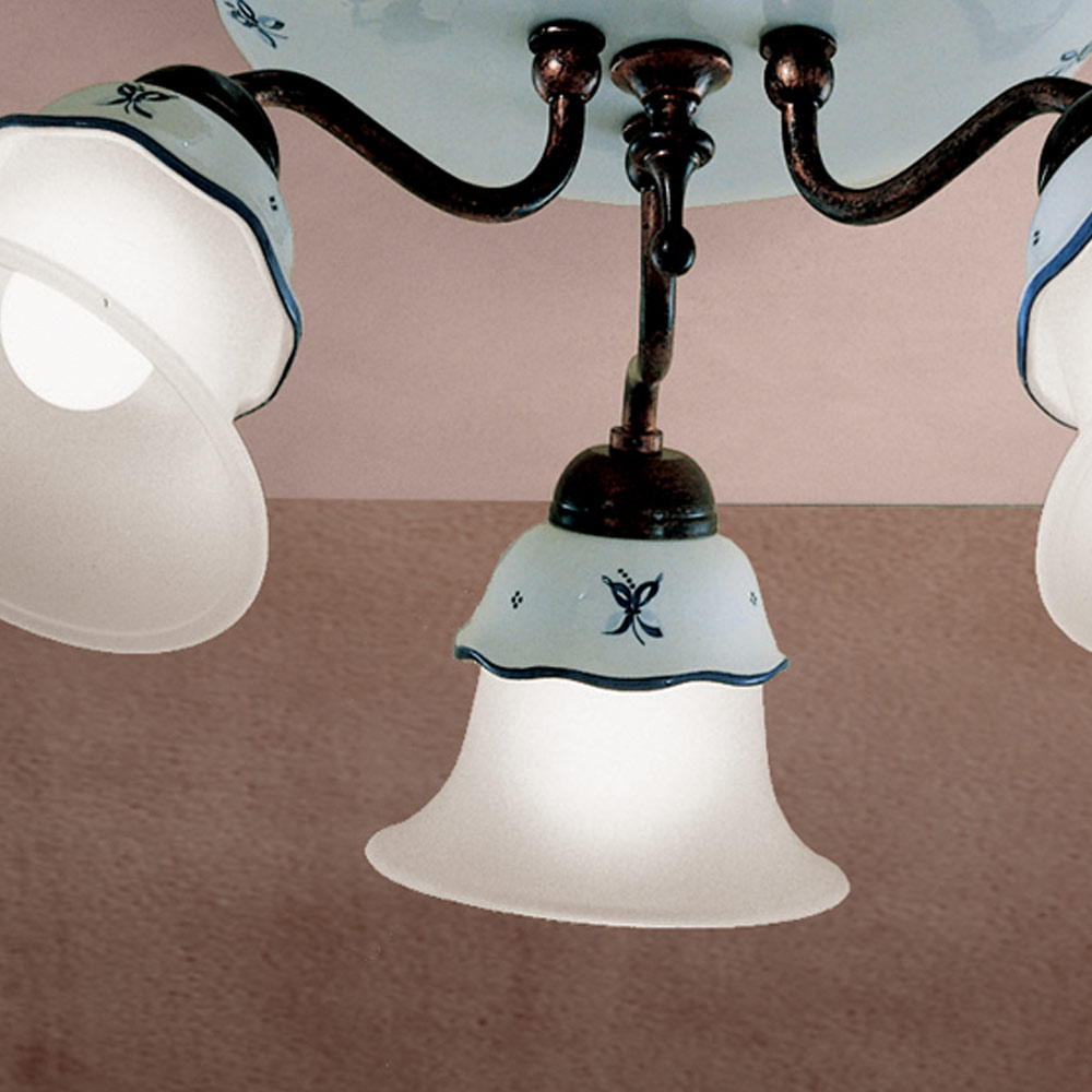 Vintage ceiling lamp in iron, glass and hand-decorated ceramic - Ferrara