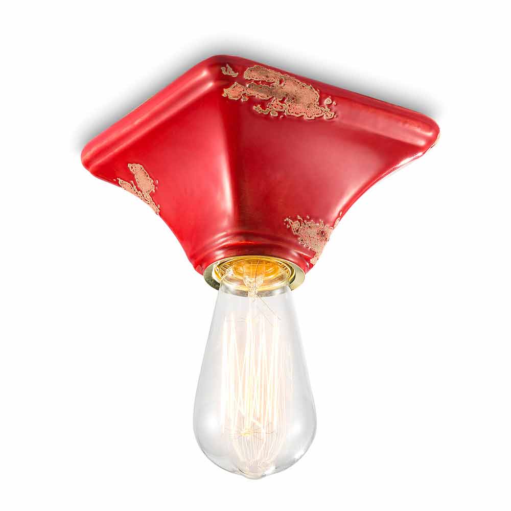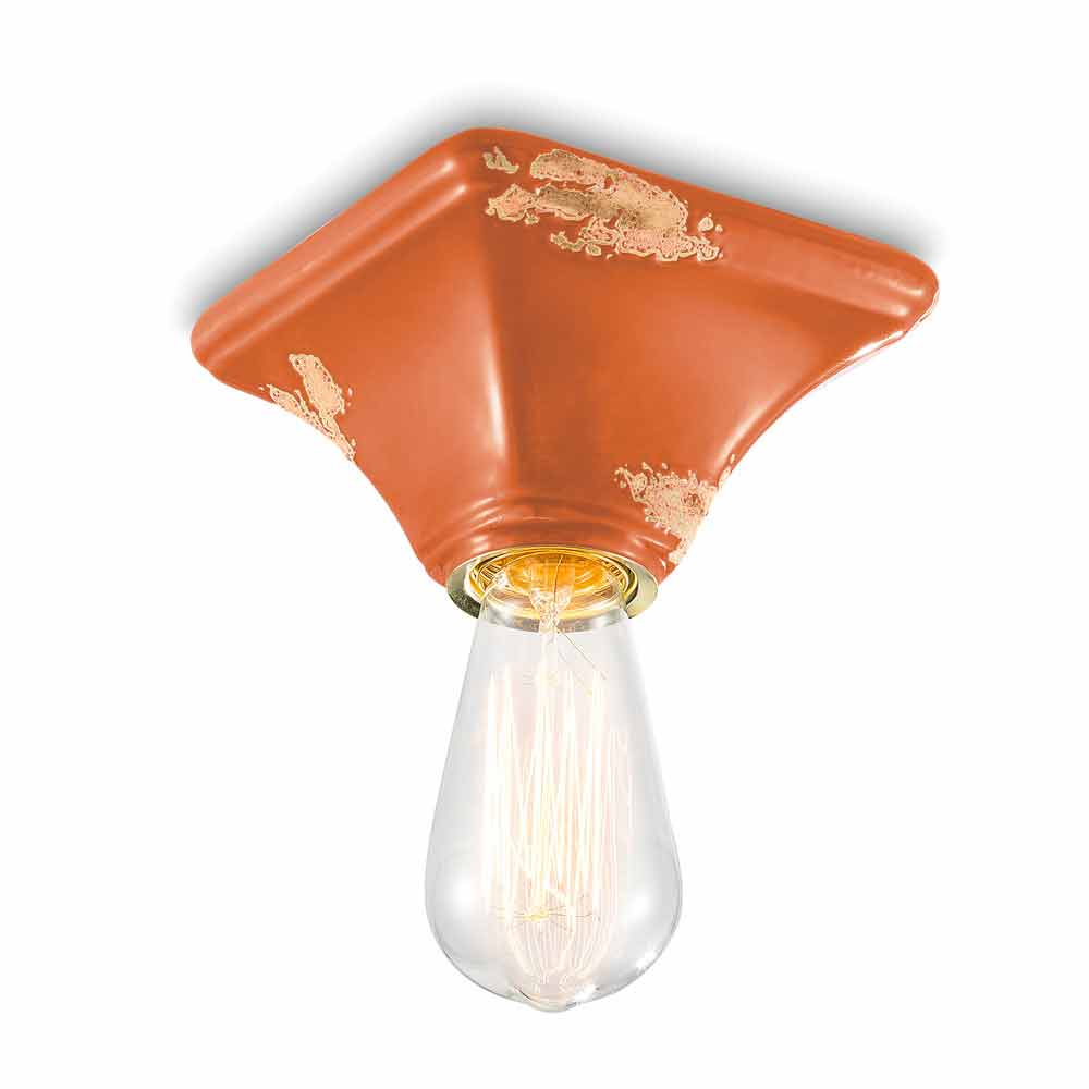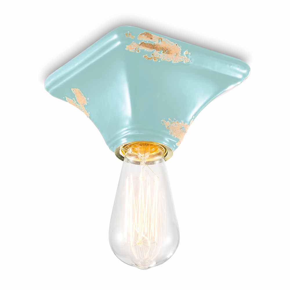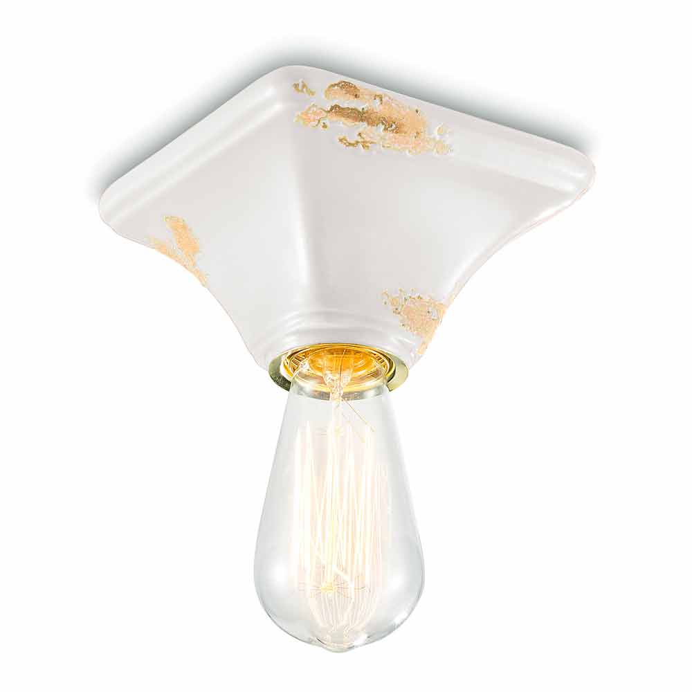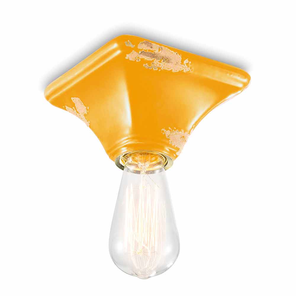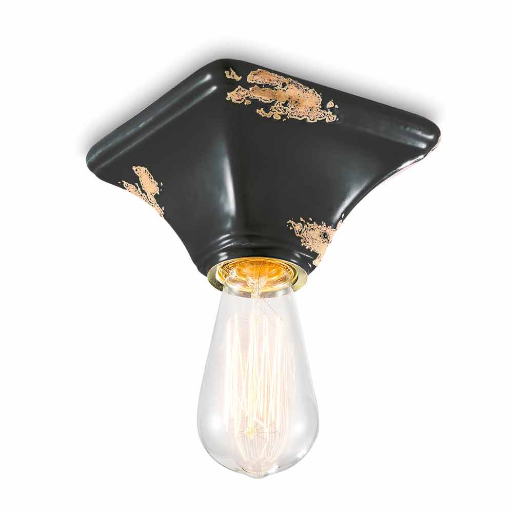 Vintage ceiling lamp in ceramic with a square base Ashley Ferroluce Ashley is a fantastic ceiling light, handmade in ceramic by skilled artisans in Italy. Ashley is a minimal and functional ceiling lamp, consisting of a square-shaped base. The peculiarity of this lamp lies in the processing of its external finish, decorated in such a way as if time had marked its path. The reproduction of the erosion of time combined with the glossy surfaces give that extra value to this ceiling light. Ideal for environments with an urban style and a vintage flavor. Ashley is made up of an essential and elegant design, which preserves the essentiality of use and reassures with a delicate balance between shapes and tones. Small details for a great effect with an antique flavor! Lamp available in different finishes. Check the color chart and enter the code of the finish you want in the appropriate box!