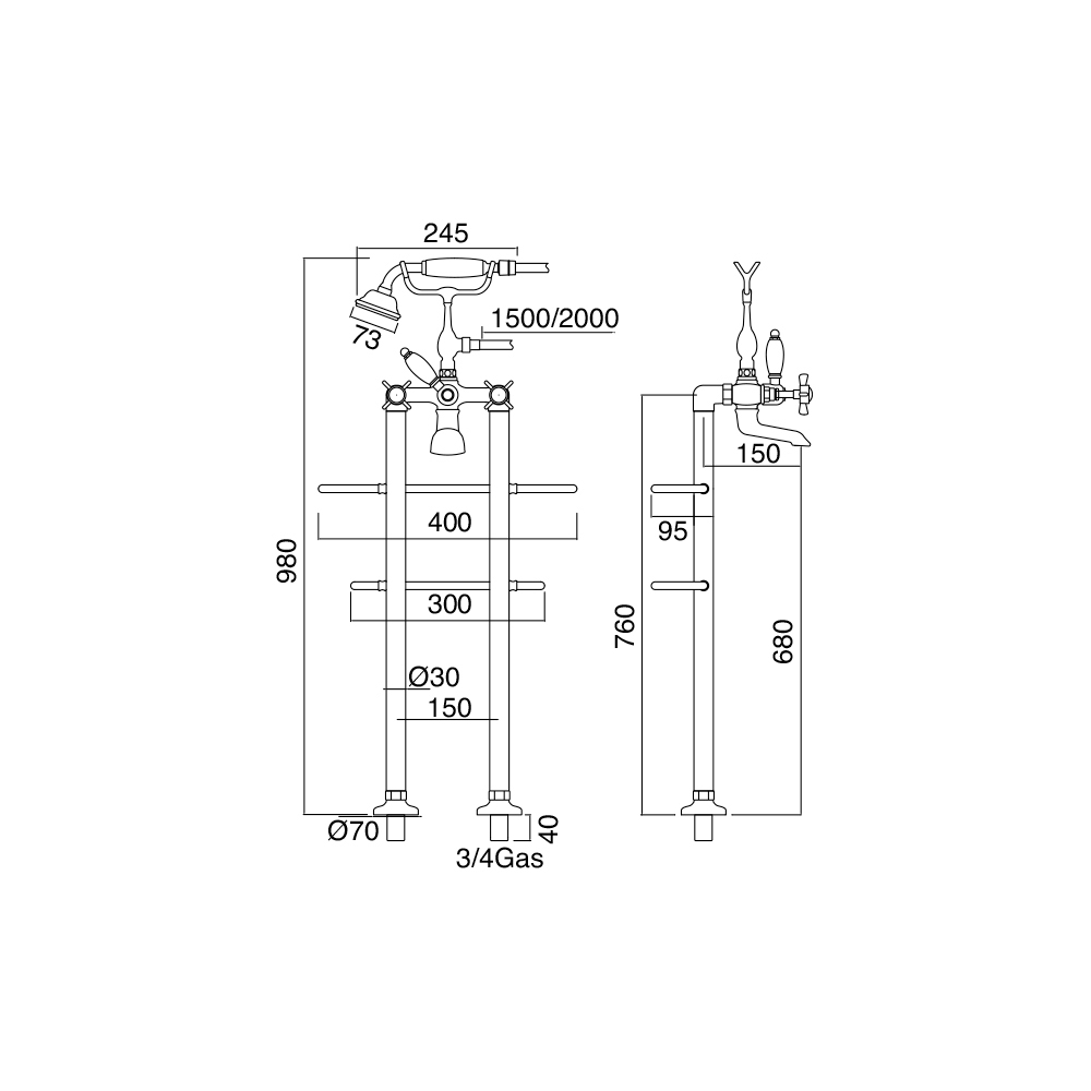 Katerina è a stately floor-standing bathtub set with towel rail, hand shower and hose.