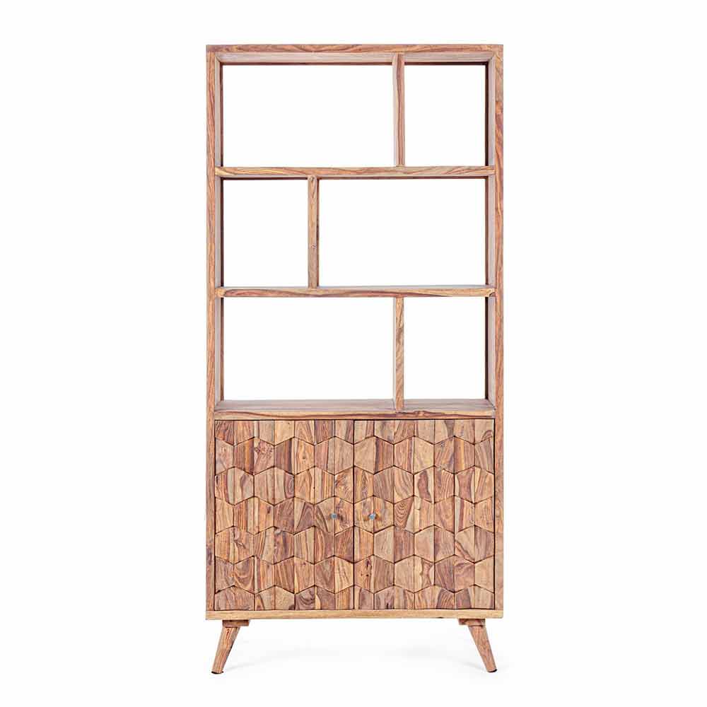 Living Room Bookcase in Mango Wood Honeycomb Design - Carida