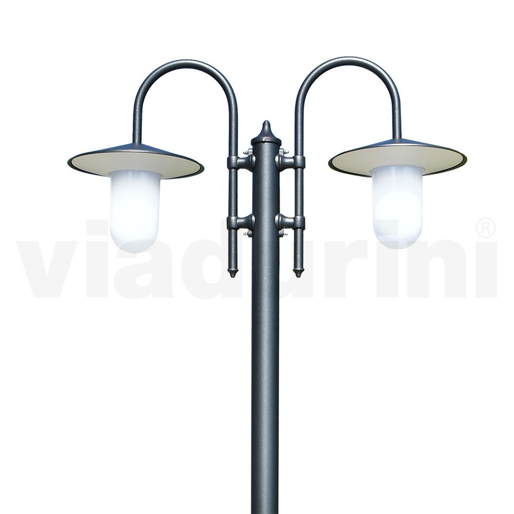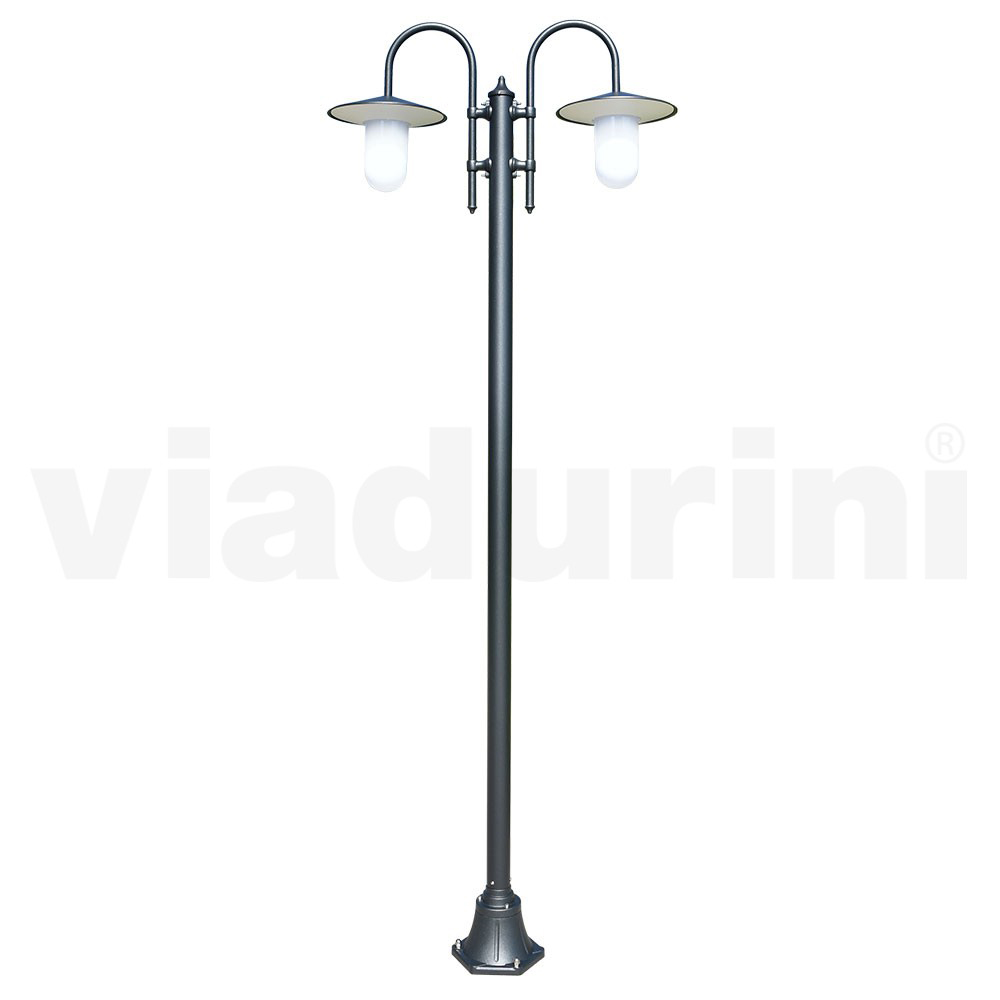 2-light outdoor street lamp in die-cast aluminum, anthracite gray finish with polycarbonate diffuser, made through 100% Made in Italy production . Complete with stainless steel screws. A furnishing solution capable of combining functionality and style, thus offering quality lighting and at the same time completing the atmosphere thanks to a touch of elegance and character .