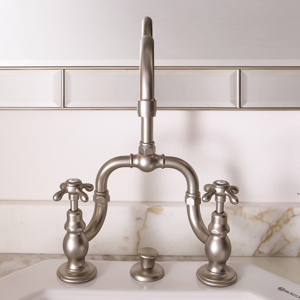 Made in Italy brass vintage design bathroom washbasin bridge mixer set, Klarisa.