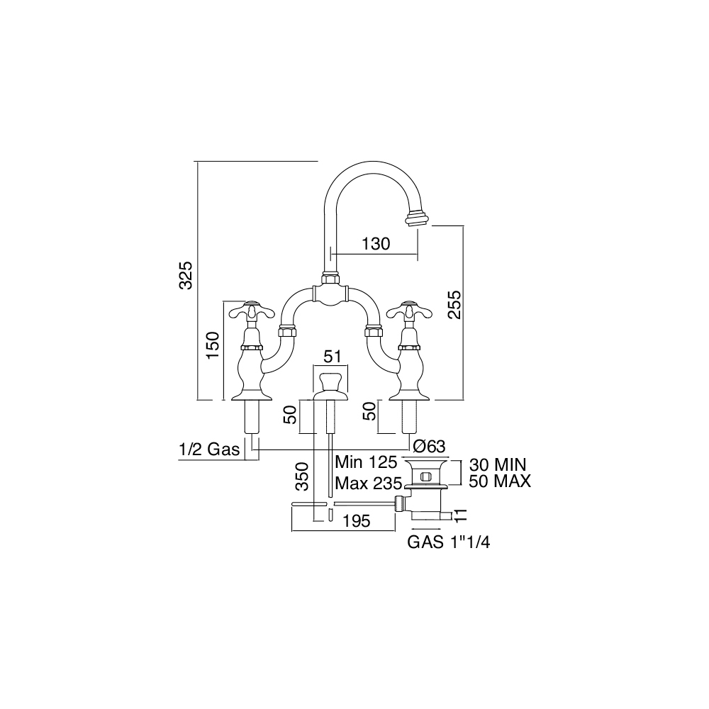 Klarisa è a fine bridged basin mixer assembly 2-3 holes with drain, adjustable center distance and articulated spout.