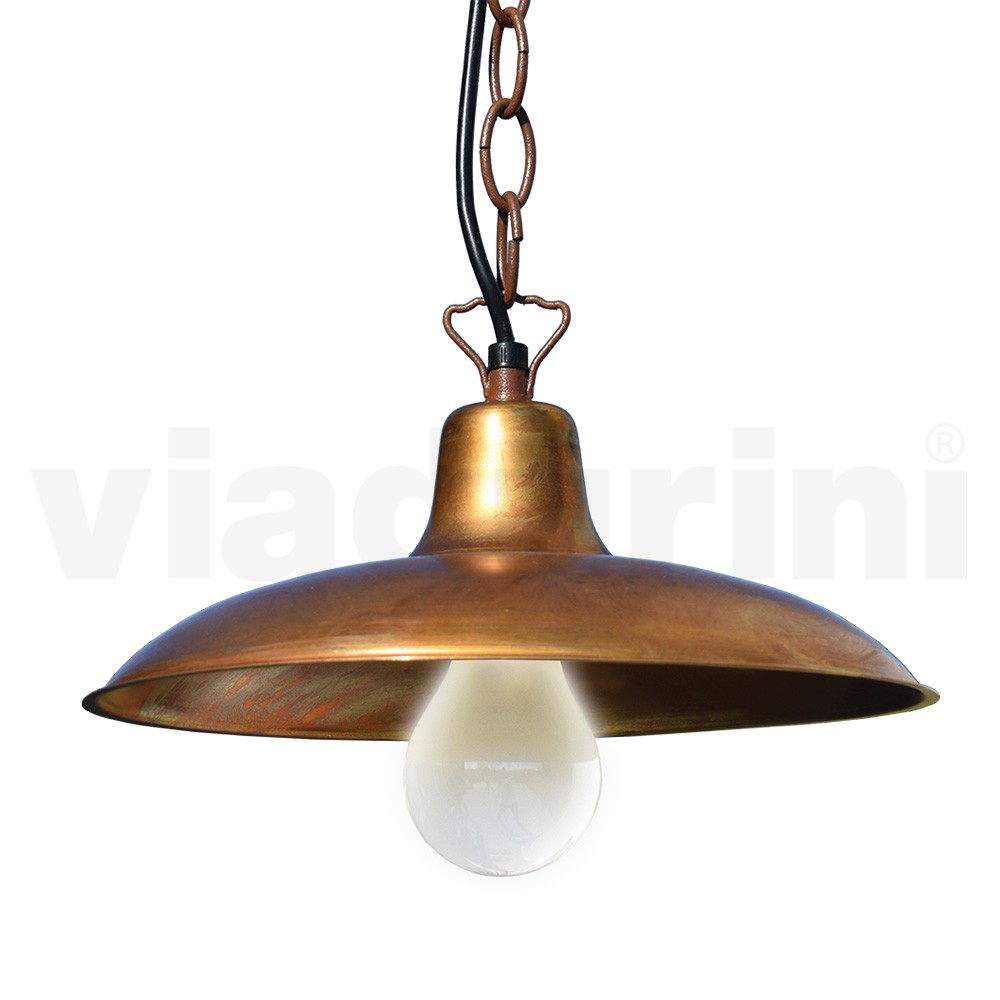 Vintage style outdoor pendant lamp in aluminum and brass Made in Italy.