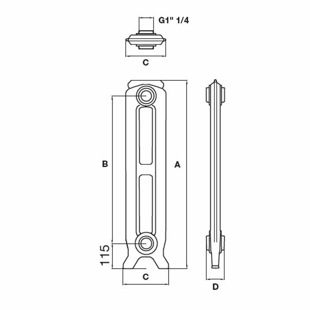 Other size variants are available, realized through an assembly in batteries from 3 to maximum 16 elements, to be chosen between 2 or 3 decorated columns. Includes side feet and anti-rust dip primer paint.