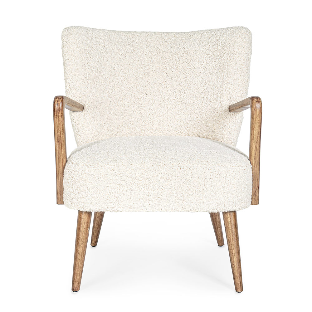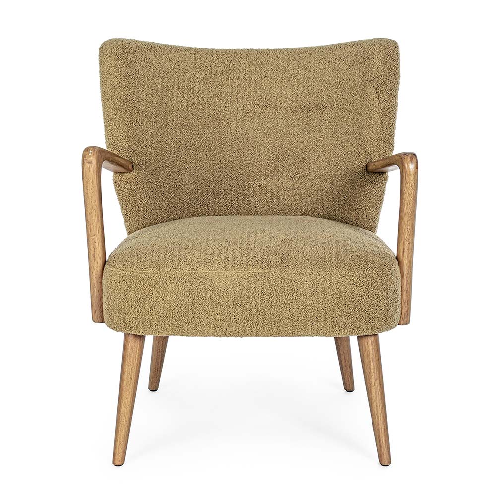 Armchair with wooden legs and armrests, 2-finish wool effect seat.