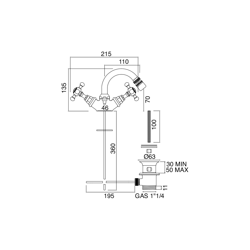 Mono-hole bidet mixer of vintage design in brass made in Italy, Elisea.