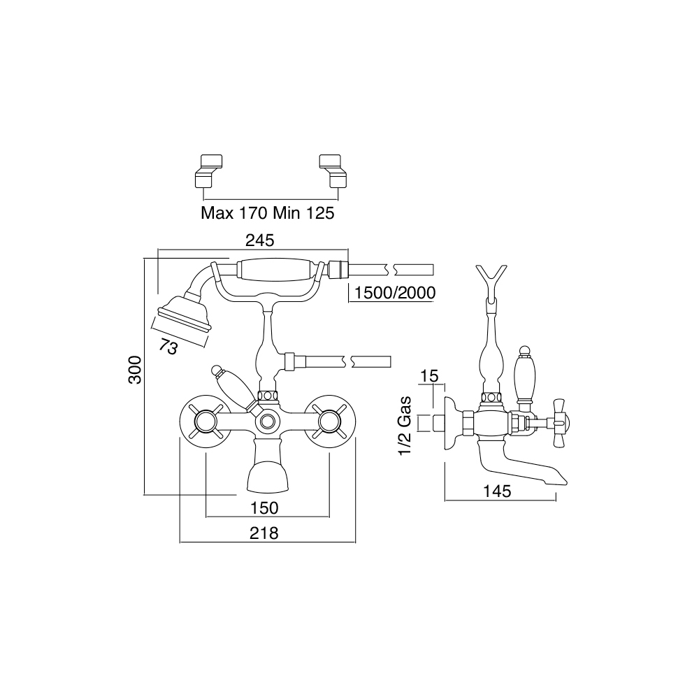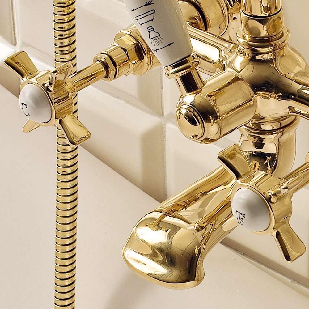 bathtub set with a hand shower and hose. Thanks to its elegant lines, it's perfect for pairing with vintage-style bathtubs.
