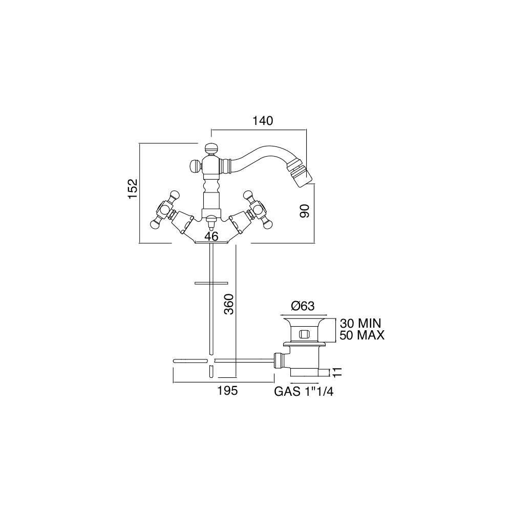 Ursula è a wonderful one-hole bidet mixer with drain, made of brass.