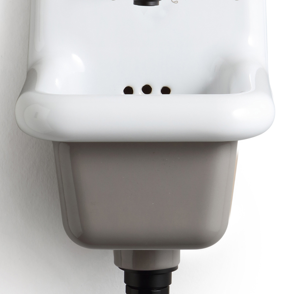 Wall-hung washbasin in patterned colored ceramic, vintage style.