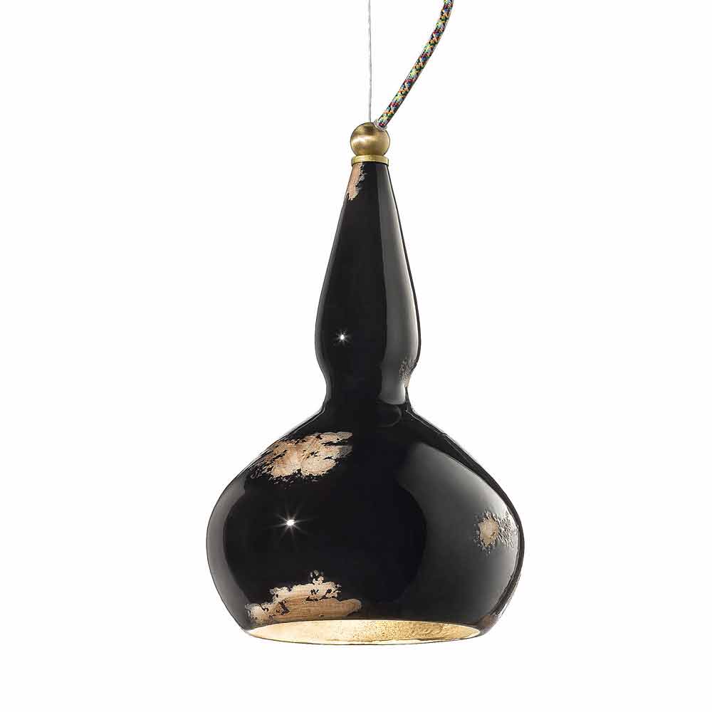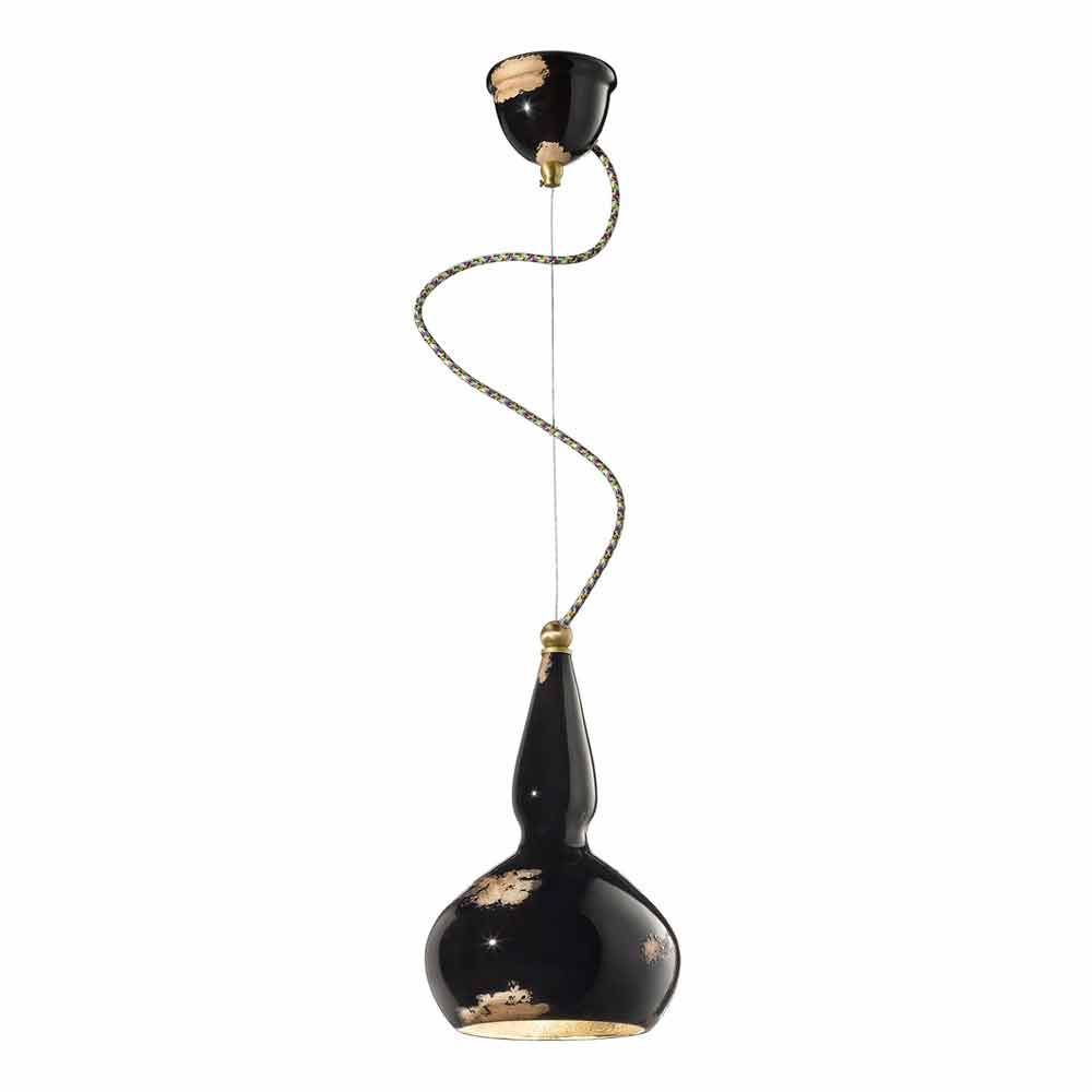 Suspended chandelier in retro style in Ferroluce ceramic Linear shapes and dimensions designed to give character to the most minimal furnishings, but able to integrate even with the most refined furnishings, able to evoke the industrial aesthetics of the twentieth century. The surfaces describe an accurate study of color and colors. The geometries can be reinterpreted through surfaces covered with soft glazes with a sanded effect and elegant shades, by the use of glazes capable of giving the surface a tactile and visual lived aspect, and to retro colors, or by using stylized flowers in perfect Shabby style that spread on the surfaces recreating a fascinating fresco effect, this damask finish is obtained through chromatic details and small technical details in the decoration, thus enhancing even the flat surfaces. Ideal for environments with an urban style and a vintage flavor. Essential, raw design, designed to diffuse a full and reassuring light. Small details for a great effect with an antique flavor.