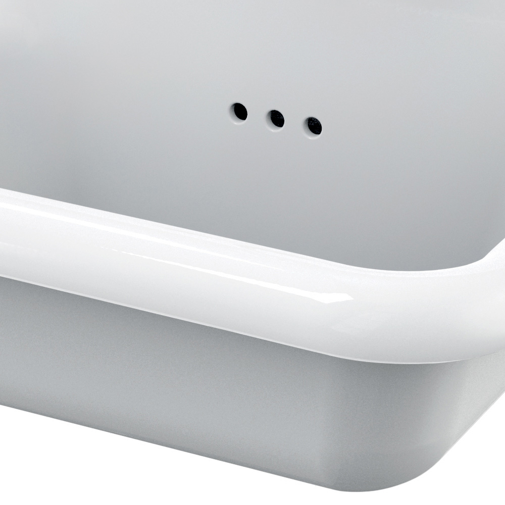 Please note: Faucet, drain, and siphon not included. The sink comes with three tap holes each.