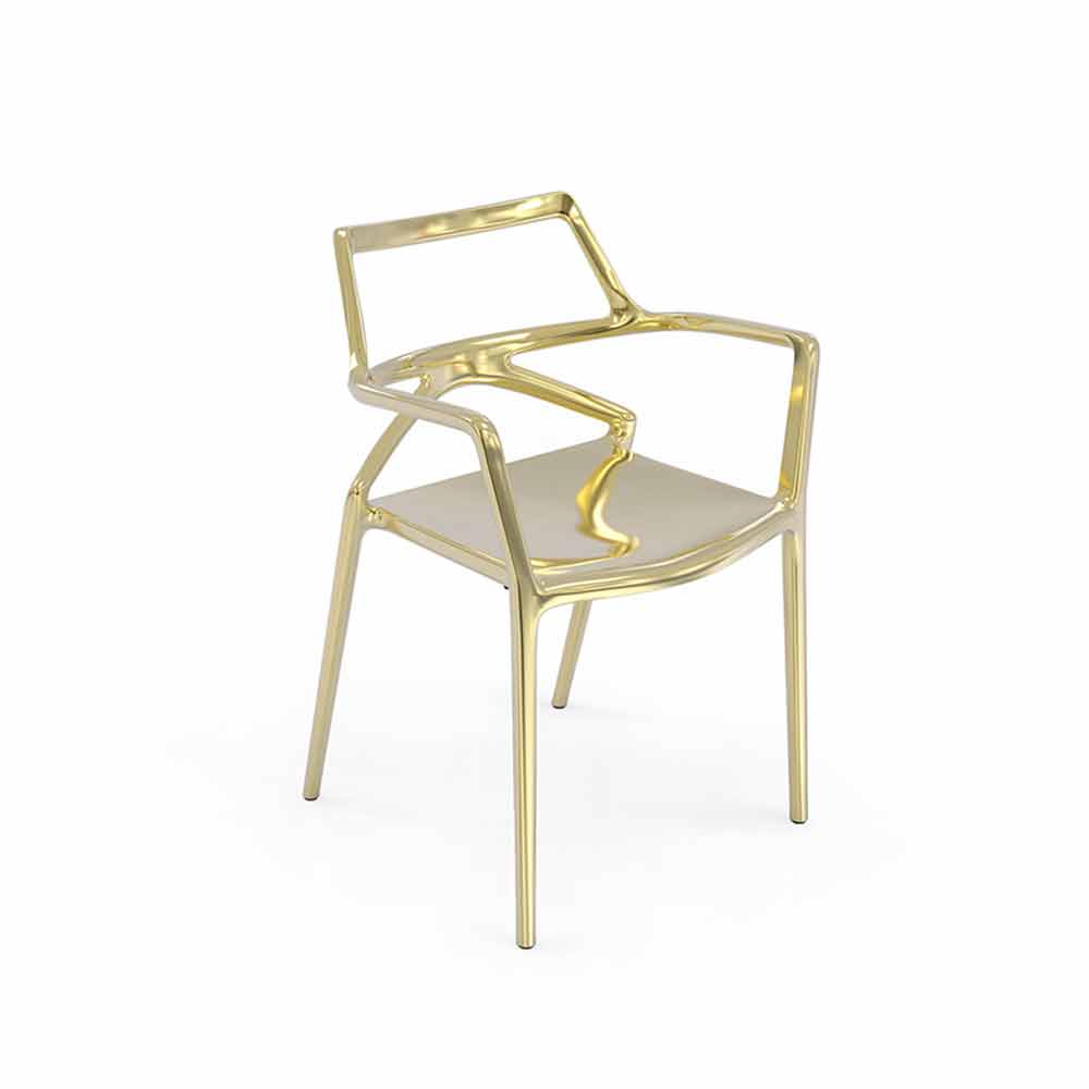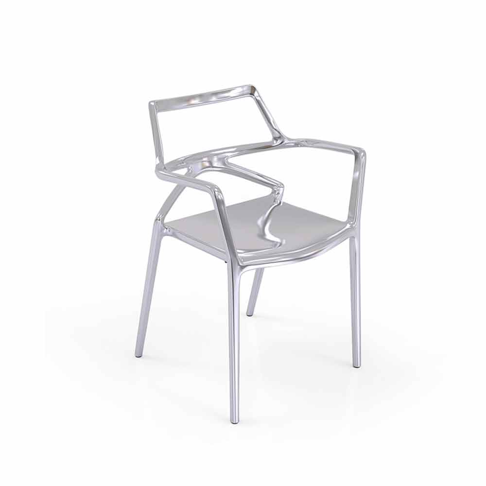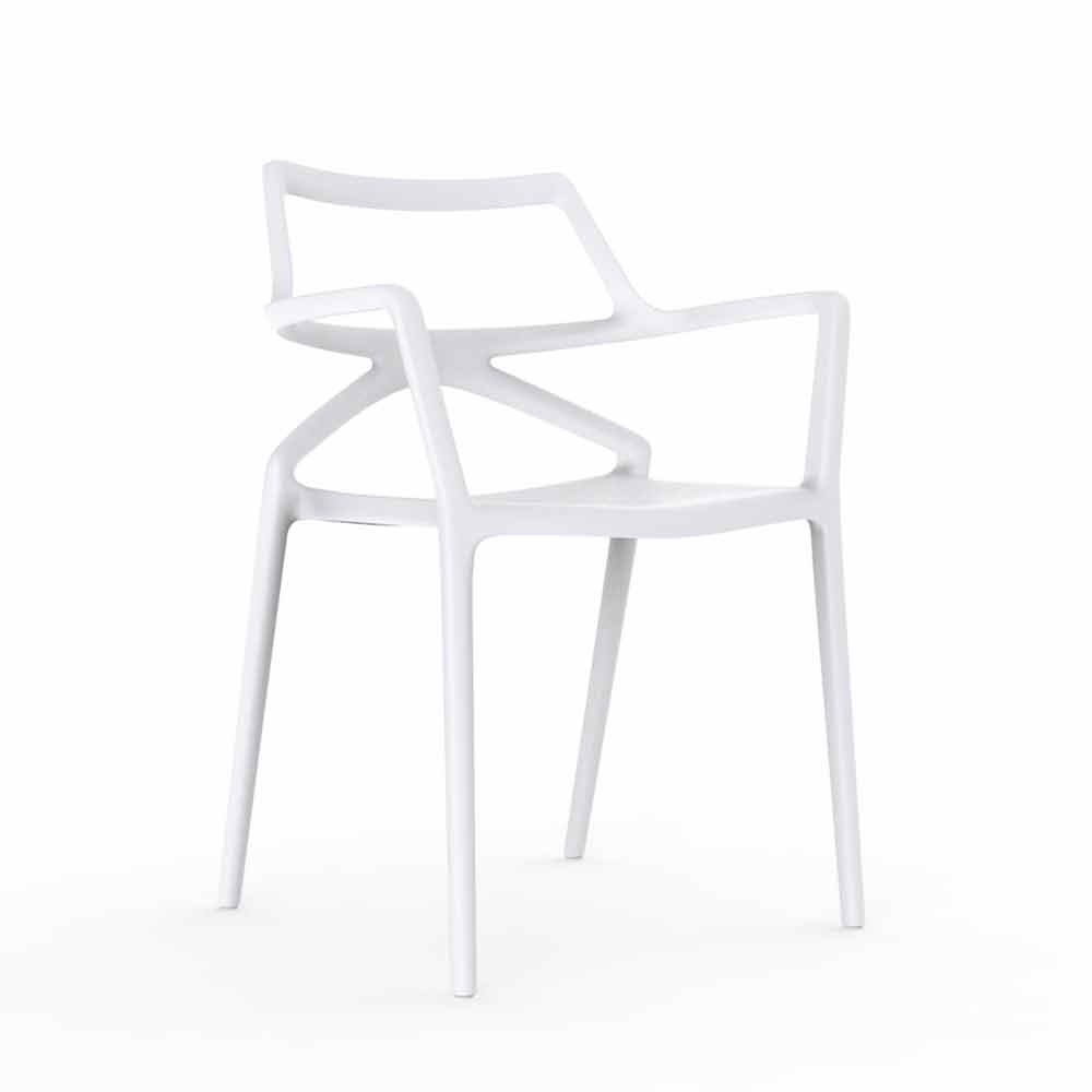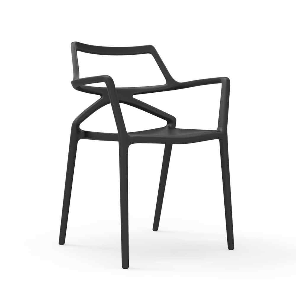 Chair with armrests Delta by Vondom made of polypropylene injection molded with air-molded gas and reinforced with fiberglass. Stackable.