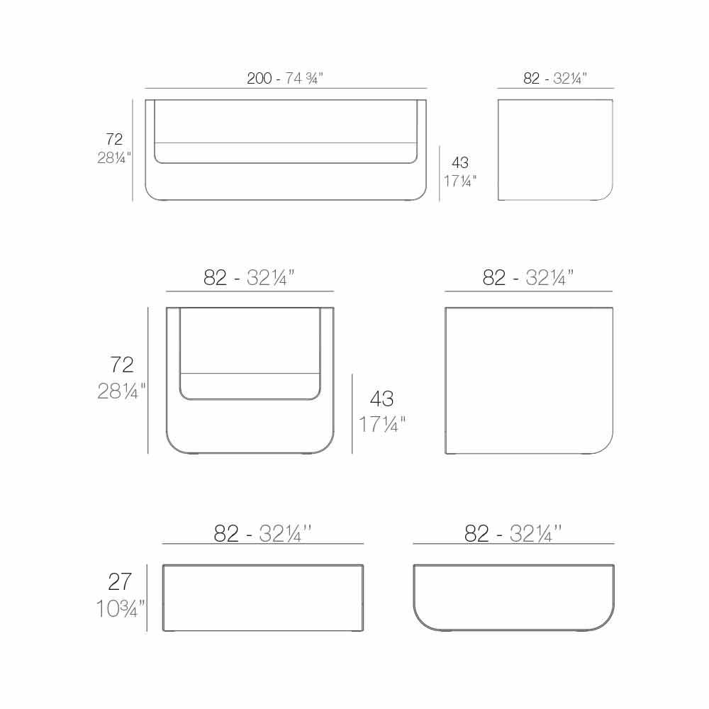 - 1 sofa L200 x P82 x H72 cm, with white cushions included;