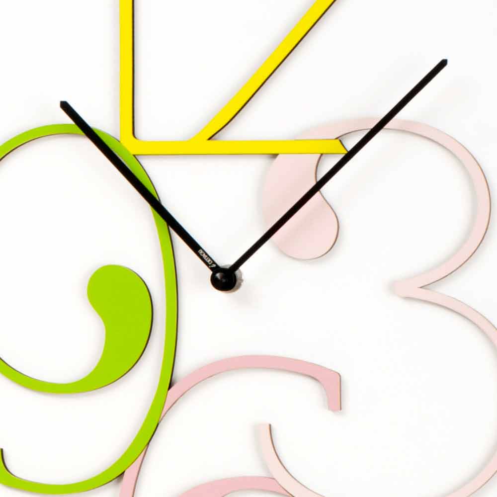 It is a watch with a fun and playful modern spirit, made of opaque white wood with laser-carved colored numbers, for a unique and design creation. Choose it to decorate your environment with style and modernity, for a touch of lively but at the same time delicate color, able to embellish the wall.