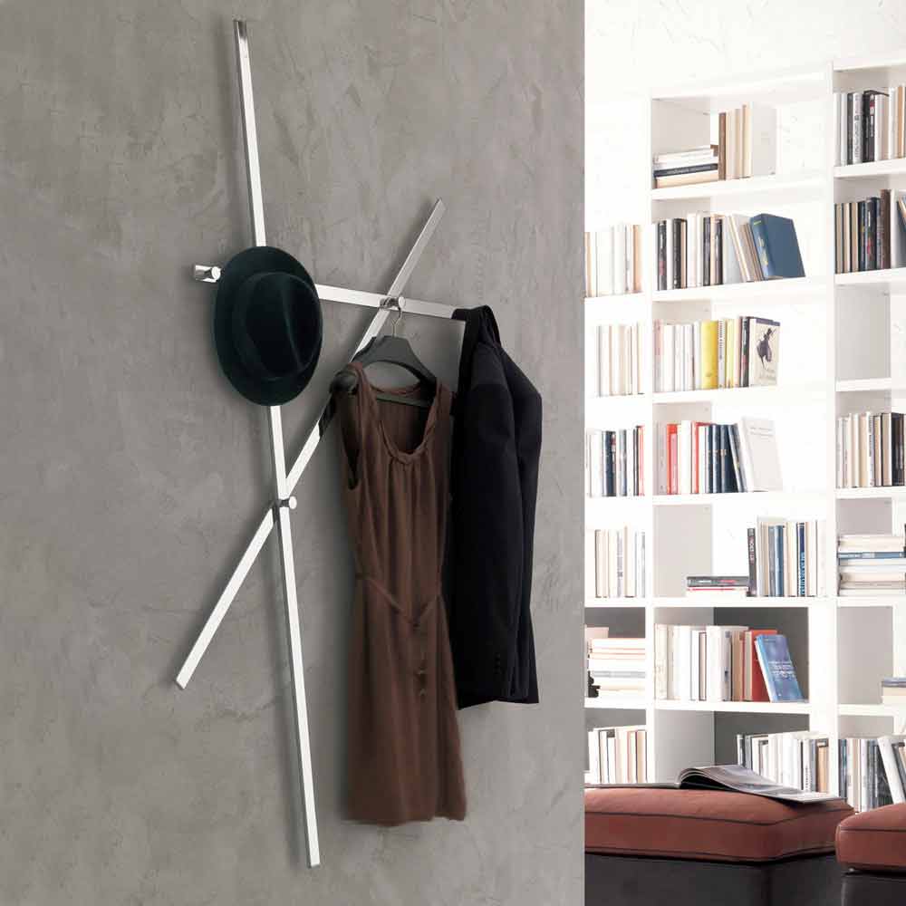 Modern coat hanger wall lamp made in Italy with painted metal structure equipped with 5 matching hooks. A stylized design characterized by simple lines that plays on the use of geometric shapes to enrich the aesthetics of the product with personality. The available finishes make it a particularly versatile furnishing solution, therefore adaptable to any room in the house with a modern taste in which it completes the furniture by creating a wonderful harmony of styles. The coat hanger is a fundamental piece of furniture in every home and must meet both functionality and design requirements. Aesthetics is in fact important as it creates a harmony with the surrounding surrounding elements and provides a practical and resistant solution on which to place jackets, coats and bags on returning home. This hanger embodies these fundamental characteristics, proving to be a perfect choice, capable of satisfying any request in the most exclusive way.