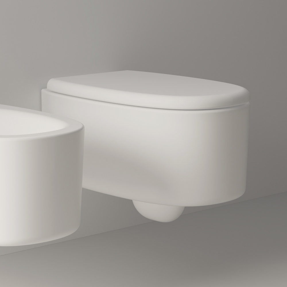Crafted from high-quality ceramic , this wall-hung sanitary ware features a compact, enveloping shape that brings harmony to the bathroom while ensuring comfort and everyday practicality. The surface elegantly reflects light, enhancing the feeling of cleanliness and order.