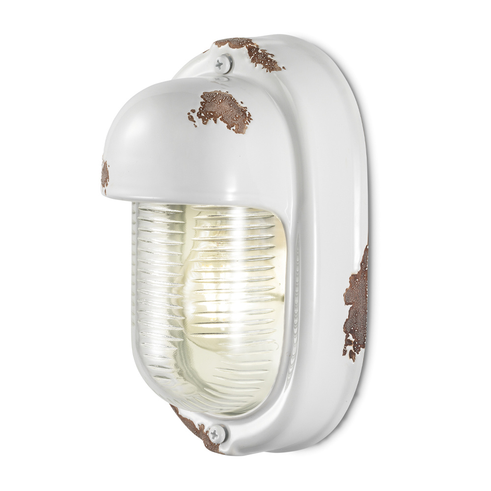 Vertical industrial-style handmade ceramic and metal wall lamp made in Italy by Ferroluce.